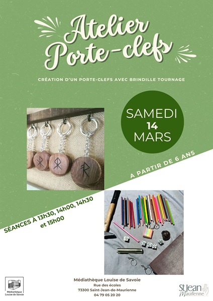 Venez fabriquer votre propre porte-clefs en bois à l'occasion de cet atelier animé par Brindille Tournage ! Un moment de création convivial pour transformer la matière naturelle en un bel objet du quotidien. 4 ateliers de 30 minutes.