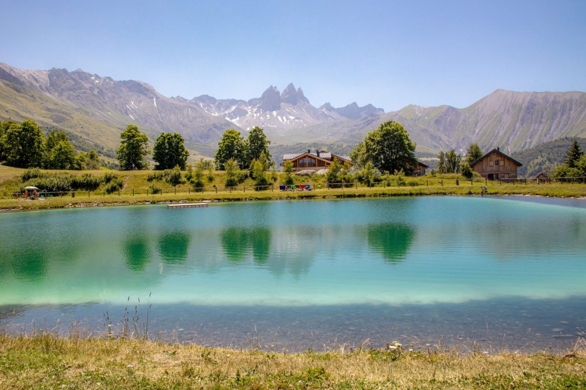 Le terrain de beach-volley est situé à côté du plan d'eau du col du Mollard.