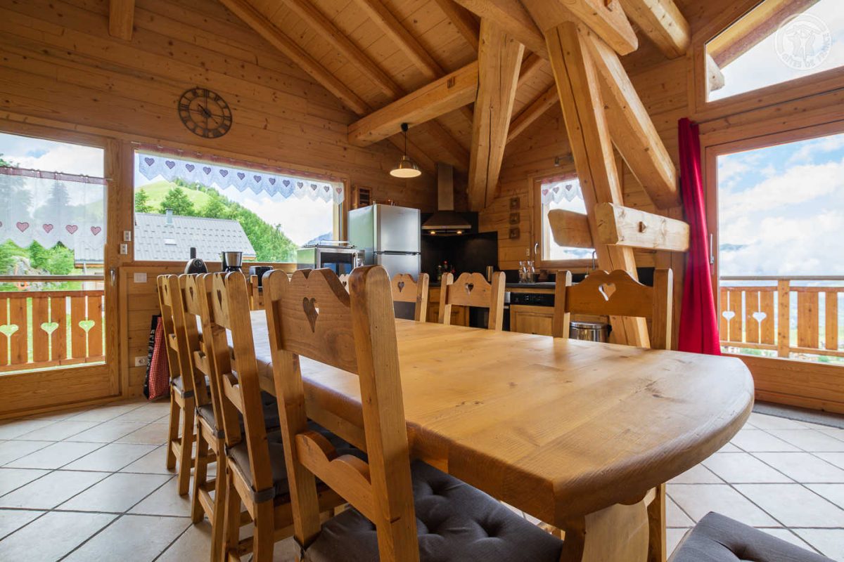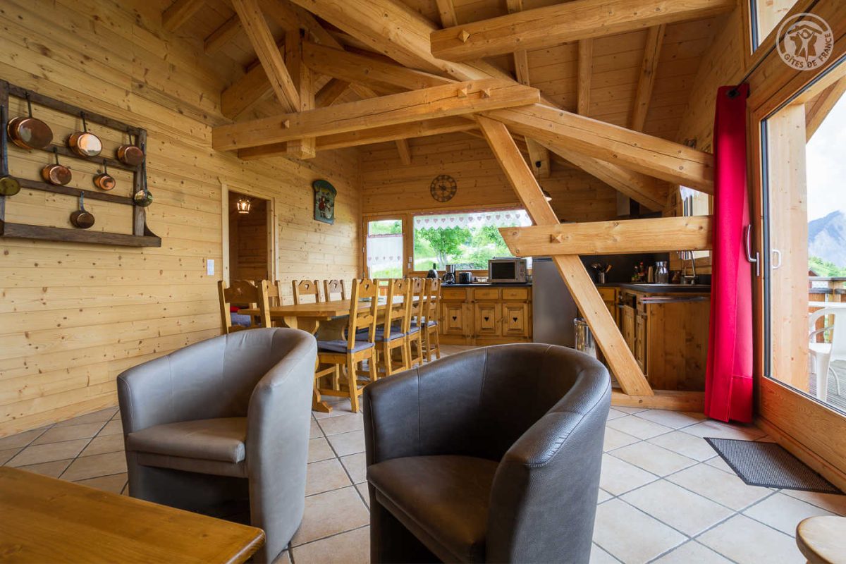 Chalet indépendant à côté du chalet des propriétaires, idéal pour 8 adultes et 2 enfants. Sur 2 niveaux : Au rez-de-chaussée : hall d'entrée, wc indépendant, coin buanderie. Au 1er étage : vaste salon-séjour-cuisine, 4 chambres (1 lit 2 personnes en 160x200 cm / 1 lit 2 personnes en 160x200 cm / 1 lit 2 personnes en 140x200 cm / 2 lits 1 personne en 80x190 cm et 2 lits superposés 1 personne en 90x190 cm), salle de bain (baignoire et wc), salle d'eau (douche et wc). Balcon-terrasse de 15 m2. Terrain.