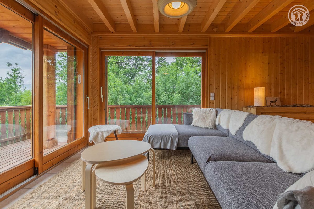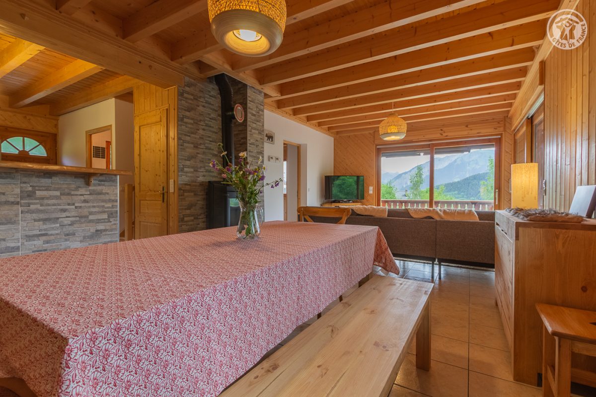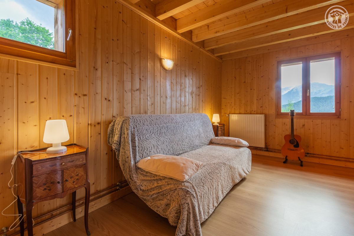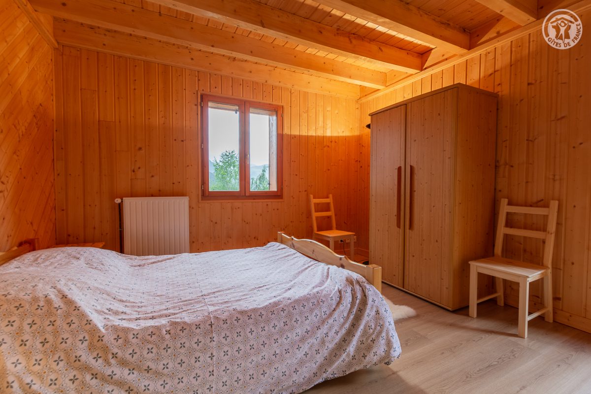 Chalet indépendant sur 3 niveaux. Au rez-de-chaussée : entrée, grand garage, buanderie. Au 1er étage : entrée, salon-séjour-cuisine avec accès terrasse, balcon et terrain, wc séparé, 1 chambre (1 lit 2 personnes en 140x190 cm), salle d'eau (douche). Au 2ème étage : 2 chambres (1 lit 2 personnes en 140x190 cm / 2 lits 1 personne en 90x190 + 2 lits 1 personne superposés en 90x190 cm), mezzanine (1 canapé convertible 2 personnes en 140x190 cm), salle d'eau (douche balnéo + wc). Stationnement privatif (3 voitures). Plancha/grill. Cour en graviers.