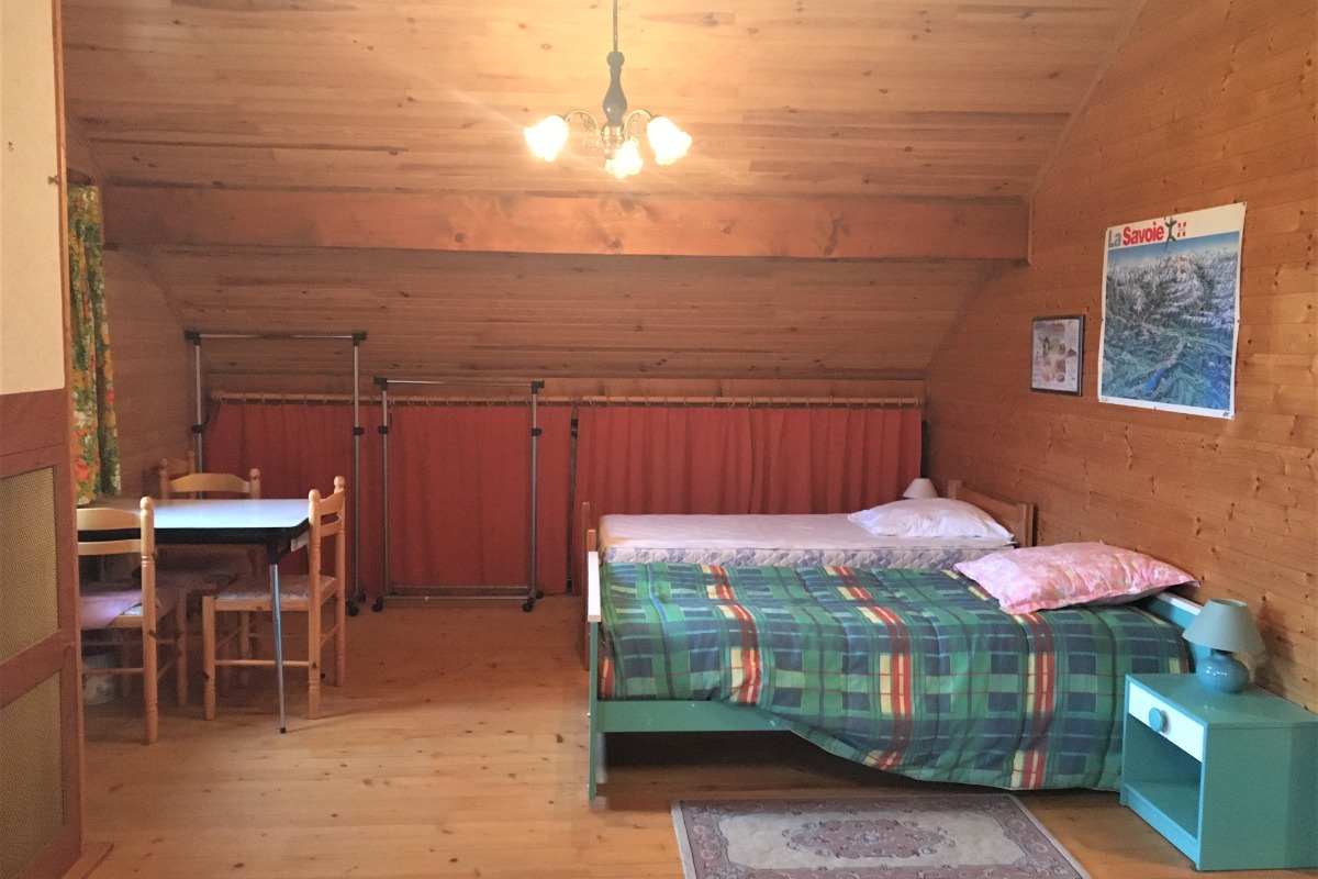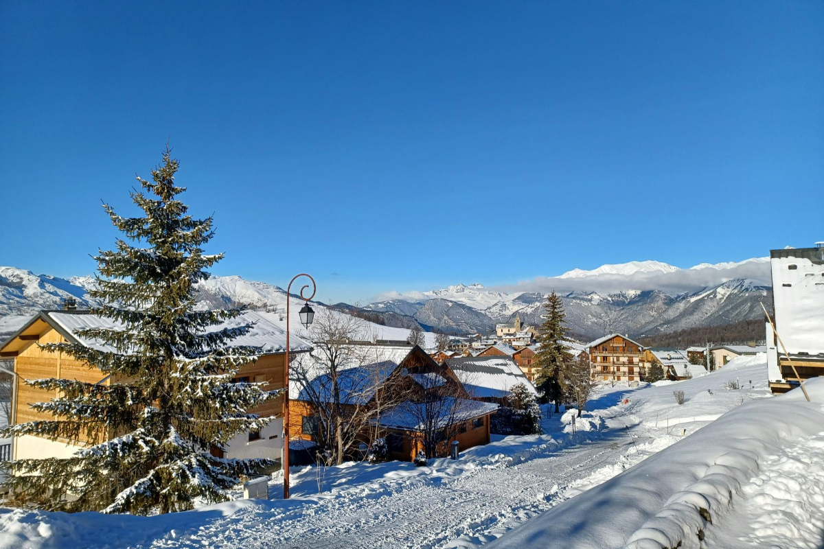 Pièce à vivre, 1 chambre, 1 SDB et 1 WC indépendants au premier étage. 2 chambres, 1 salle de bain, 1 WC indépendants au second. Grand garage, coin skis et WC au sous-sol. Le séjour donne sur une très grande terrasse plein sud à l'étage. Terrain tout autour. À 300m des pistes et des commerces, il offre une vue imprenable sur les montagnes à 360°, sans vis-à-vis.