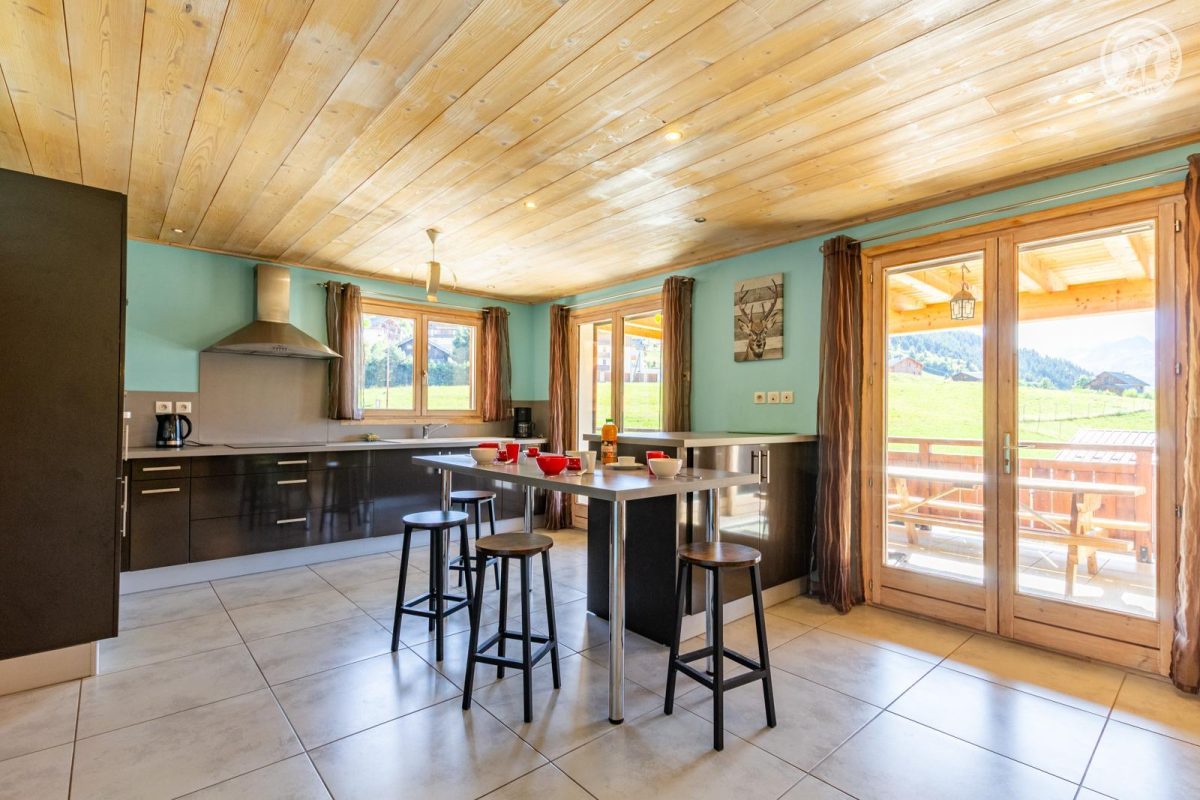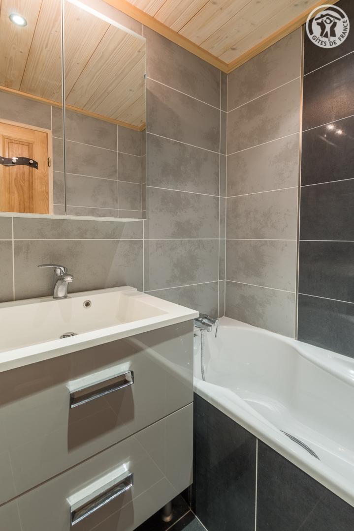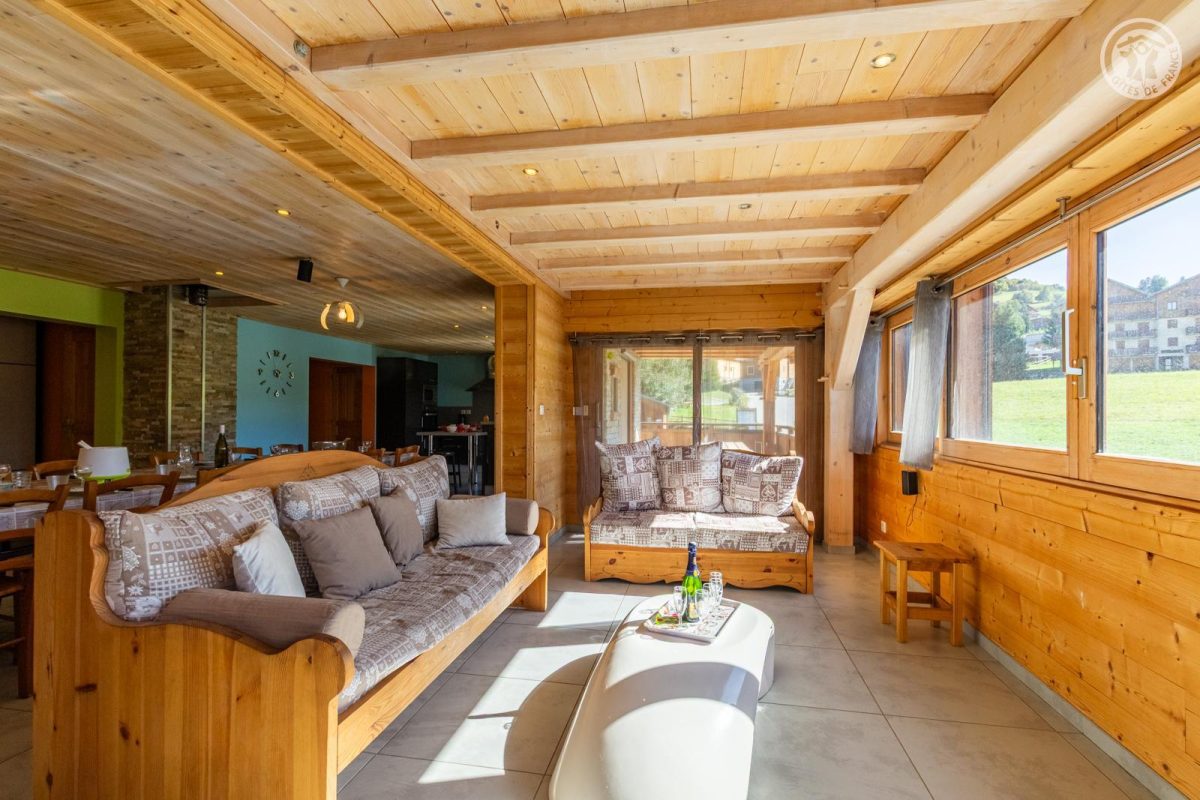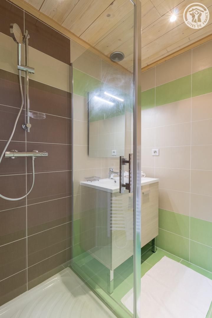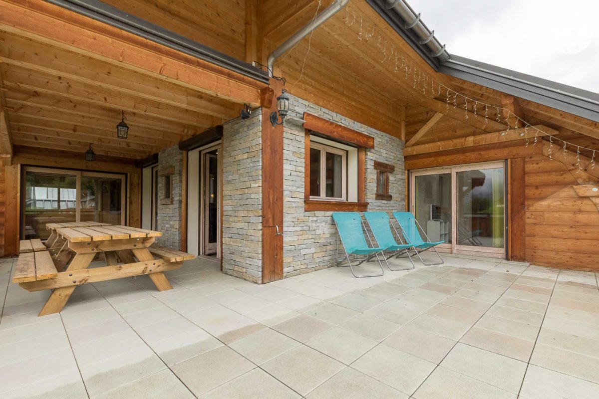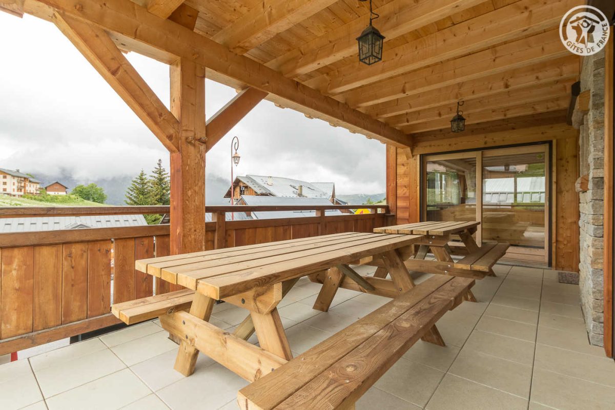 4 gîtes + magasin de sports dans la maison du propriétaire. Au 1er étage : séjour-cuisine et salon (2 lits 1 personne gigognes), 5 chambres (2 lits 1 personne en 80x190 cm / 1 lit 2 personnes en 140x190 cm et un canapé lit 2 personnes / 1 lit 2 personnes en 140x190 cm / 1 lit 2 personnes en 140x190 cm / 2 lits 1 personne en 90x190 cm avec salle d'eau - douche privative), salle de bain (baignoire + douche), 2 wc séparés. Large balcon-terrasse de 47 m2 en partie couverte, local à skis avec sèche-chaussures.