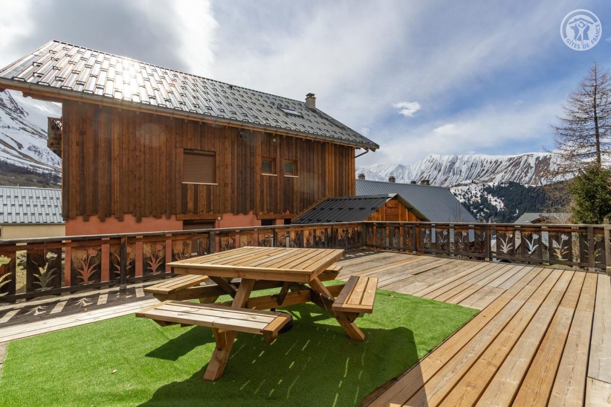 Au rez-de-chaussée de ce chalet de pays situé à 200 mètres des pistes, profitez d'un hébergement offrant une vaste terrasse de 60 m2 en bordure de prairie. C'est au cœur d'un secteur calme que vous pourrez vous détendre, vous retrouver, et partir à la découverte de la familiale station d'Albiez Montrond.