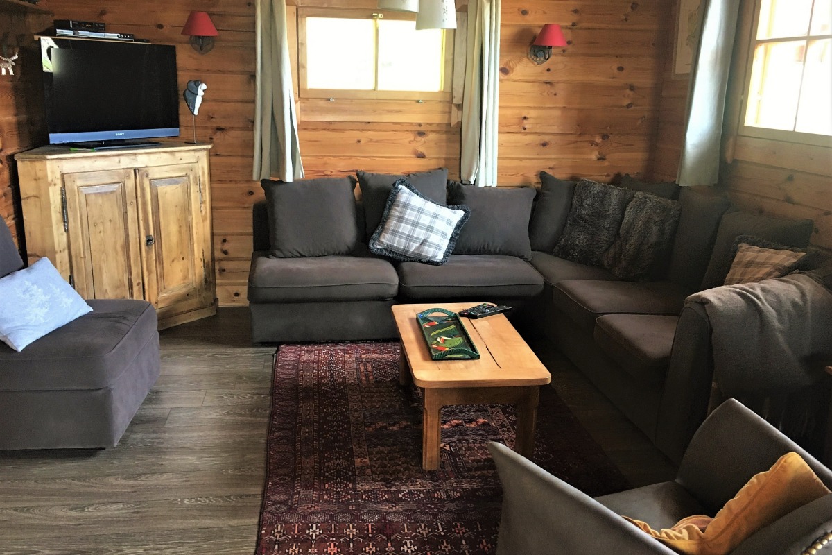 Le chalet est composé de cinq chambres, une salle de bain, une salle de douches et deux WC ainsi que d'un salon et une cuisine ouverte.