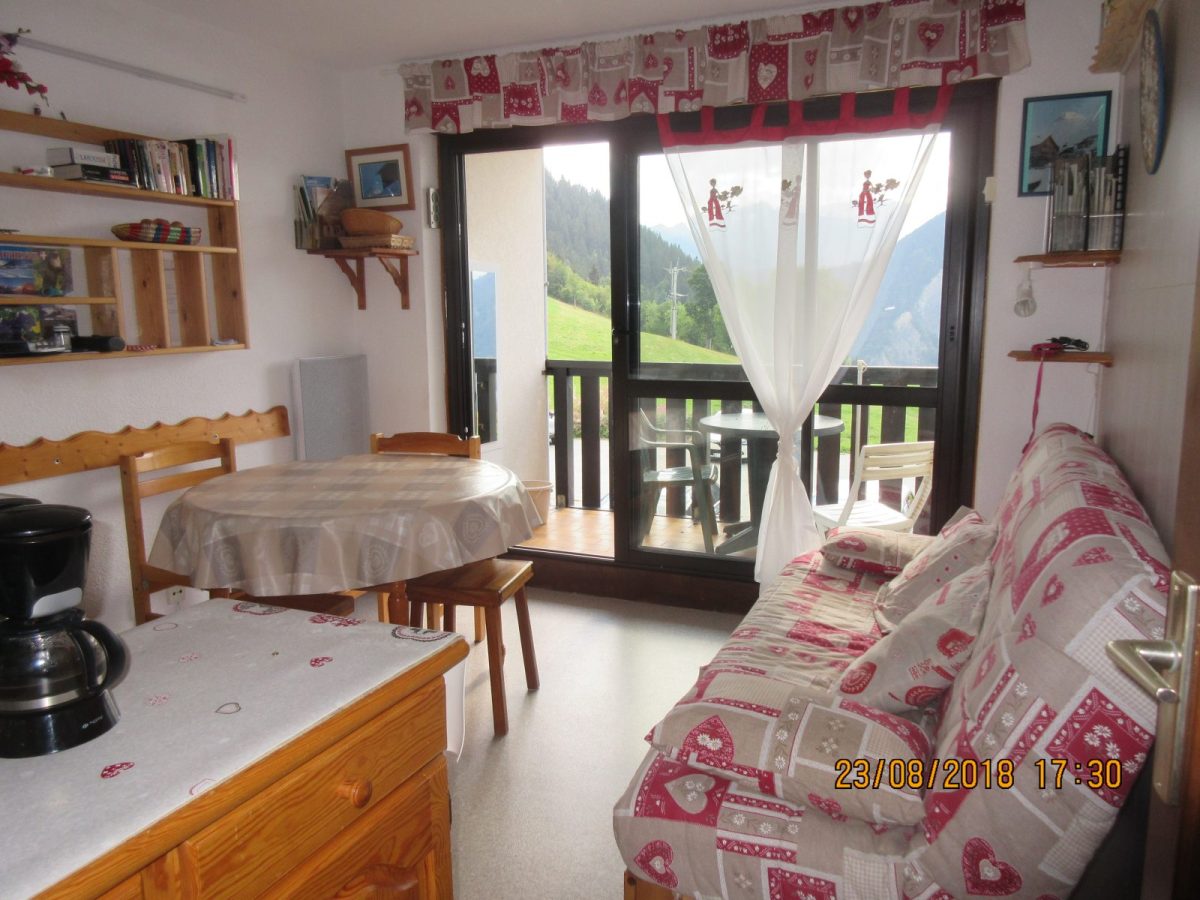 Studio 4 personnes situé dans la résidence Champfleuri au Chef-lieu du village, proche de toutes commodités et au départ d'un sentier de randonnée.