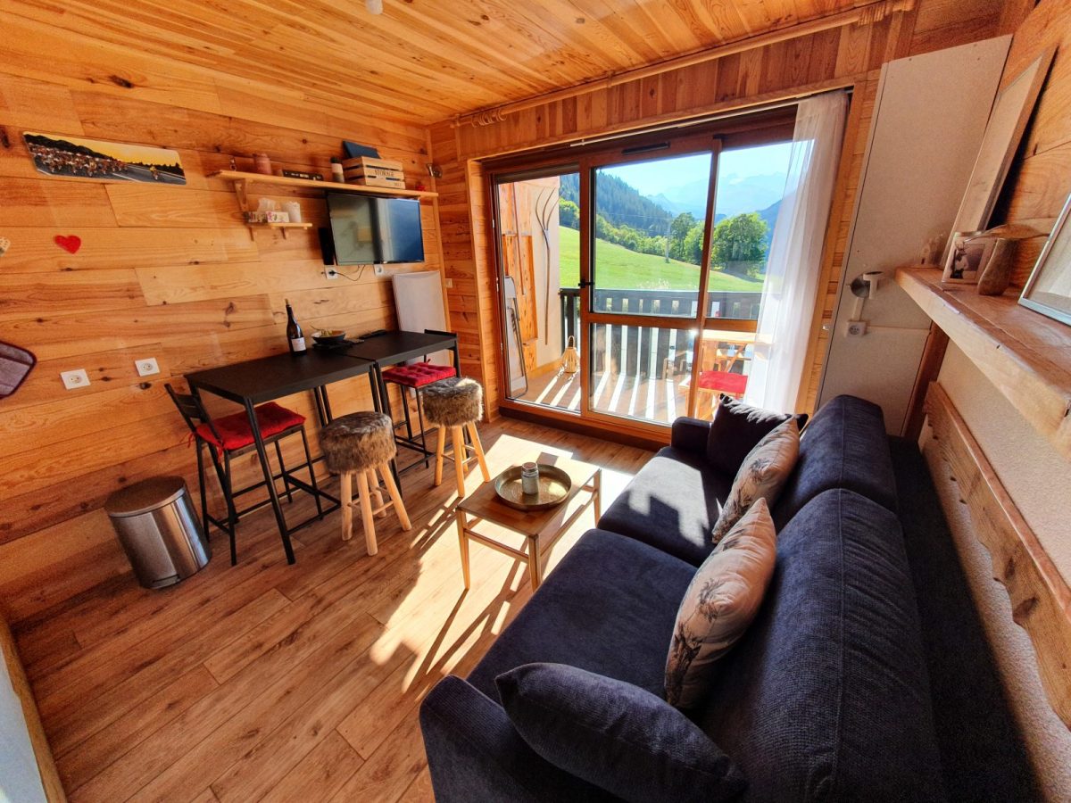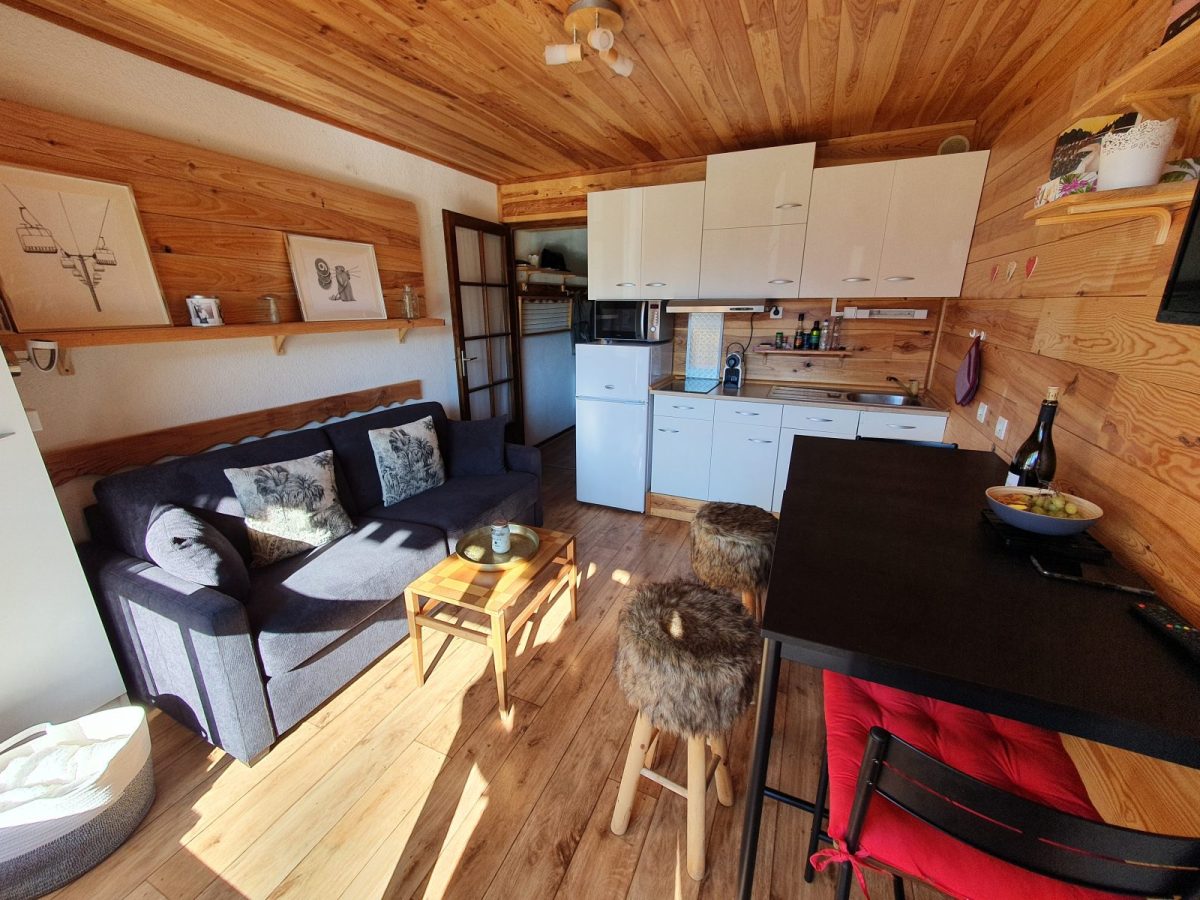 Le studio, se compose d'une pièce principale avec cuisine équipée et canapé convertible neuf ainsi que d'un coin montagne avec lit 130 2 places, salle de bain entièrement refaite.