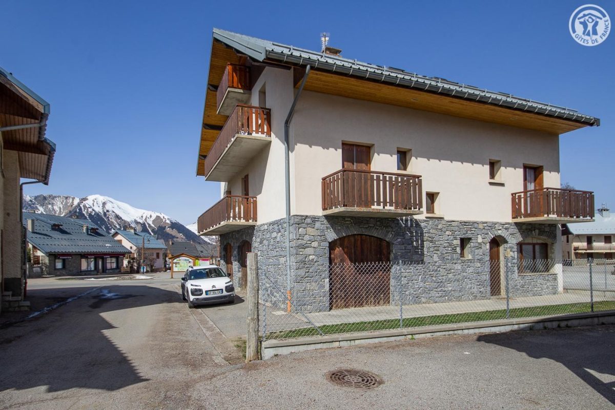 2 gîtes dans la maison du propriétaire. 1er étage : séjour-cuisine coin salon (1 lit 1 personne), 2 chambres (1 lit 2 personnes / 3 lits 1 personne dont 2 superposés), salle d'eau (douche), lave-linge et sèche-linge commun dans une buanderie. Double balcon. Ski alpin sur place. Maison contemporaine située en pied de pistes, en plein cœur d'un charmant village typique. Bon confort. Spacieux et lumineux. Double balcon exposé sud-est. Petit espace extérieur commun. Belle vue dégagée sur la place du village et le massif. Commerces et services sur place.