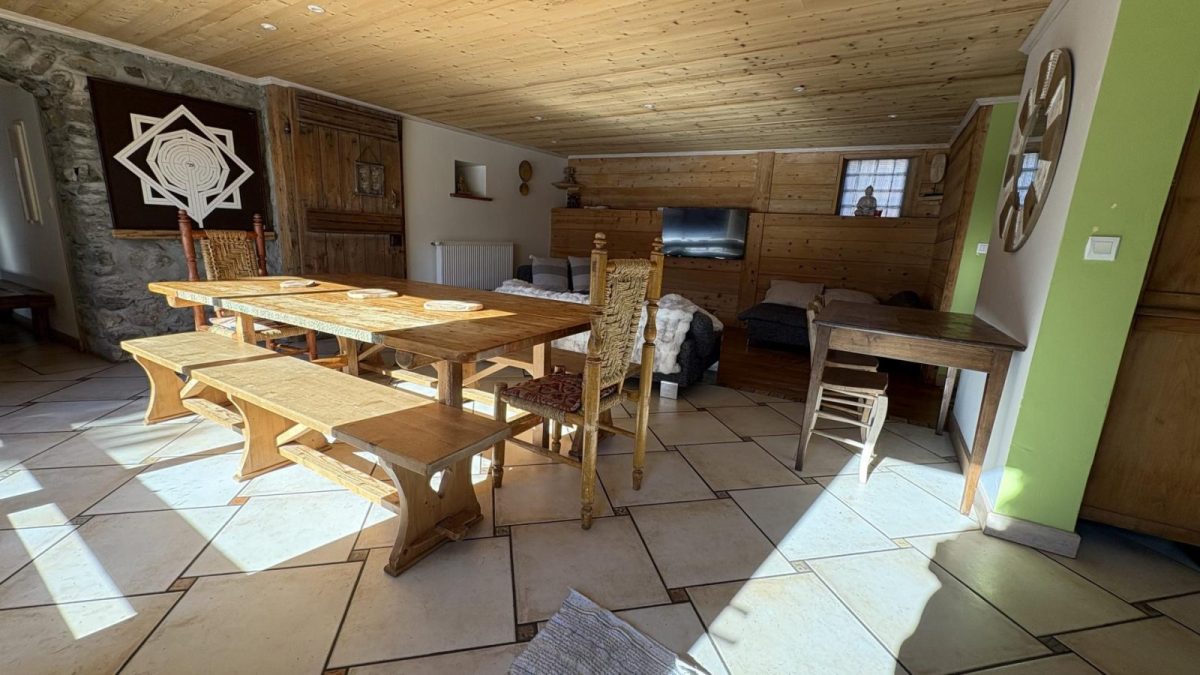 Être au cœur du village tout en étant au calme afin de profiter des vues dégagées sur les montagnes et d'une agréable terrasse ensoleillée, voici ce que propose la Ferme du Soleil ! Cet appartement aménagé pour accueillir confortablement 14 personnes. Une salle est disponible sur la même propriété en supplément pour l'organisation de séjours bien-être (yoga, Qi-gong, pilates / voir modalités directement auprès du propriétaire).