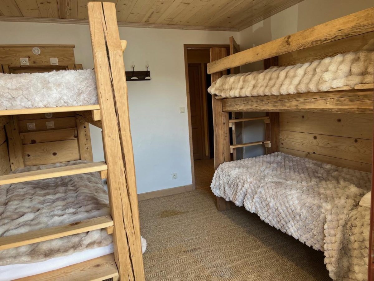 Chalet comprenant 2 gîtes. L'appartement est en duplex. Rez-de-chaussée : entrée avec nombreux rangements pour les vêtements et les chaussures, WC, vaste pièce de vie avec une cuisine ouverte sur séjour. Un cellier buanderie est accessible depuis la cuisine. 1 chambre dotée de 3 lits indépendants avec douche à l'italienne et lavabo. A l'étage : 4 chambres ( 1 chambre avec 1 lit 140 x 190 / 1 chambre avec 2 lits 140 x 190 cm superposés / 1 chambre 2 lits simples superposés /1 chambre avec 3 lits simples et une baignoire + un lavabo, salle d'eau avec WC indépendant. Terrasse et balcons sont exposés Sud. Agréable jardinet avec transats et table de ping-pong. Local à skis et vélos.