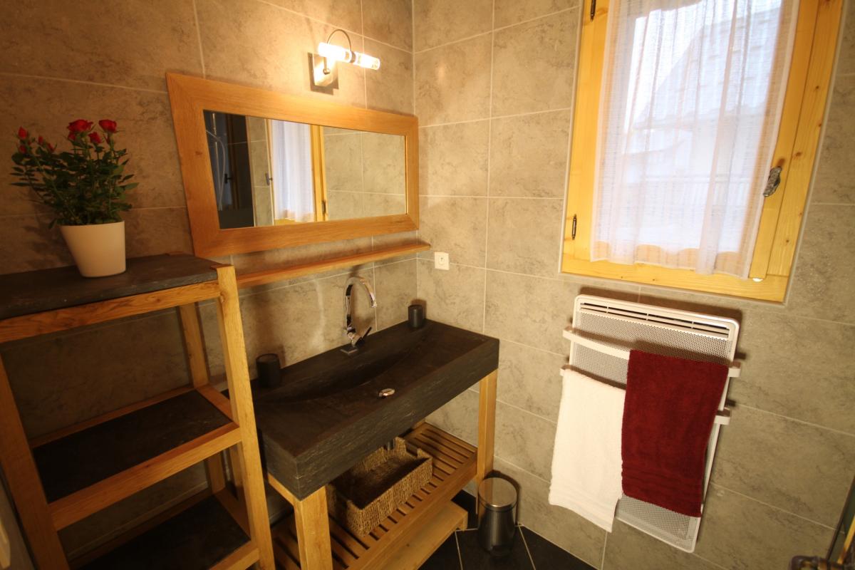 1er + 2ème étages : séjour-cuisine coin salon (1 convertible 2 personnes), Wifi, lave-linge + sèche-linge communs, 2 chambres (1 lit 2 personnes / 2 lits 1 personne), salle d'eau (douche). Balcon. Terrasse commune. Terrain + cour communs. Surface au sol : 61m² (inclus mansardes).