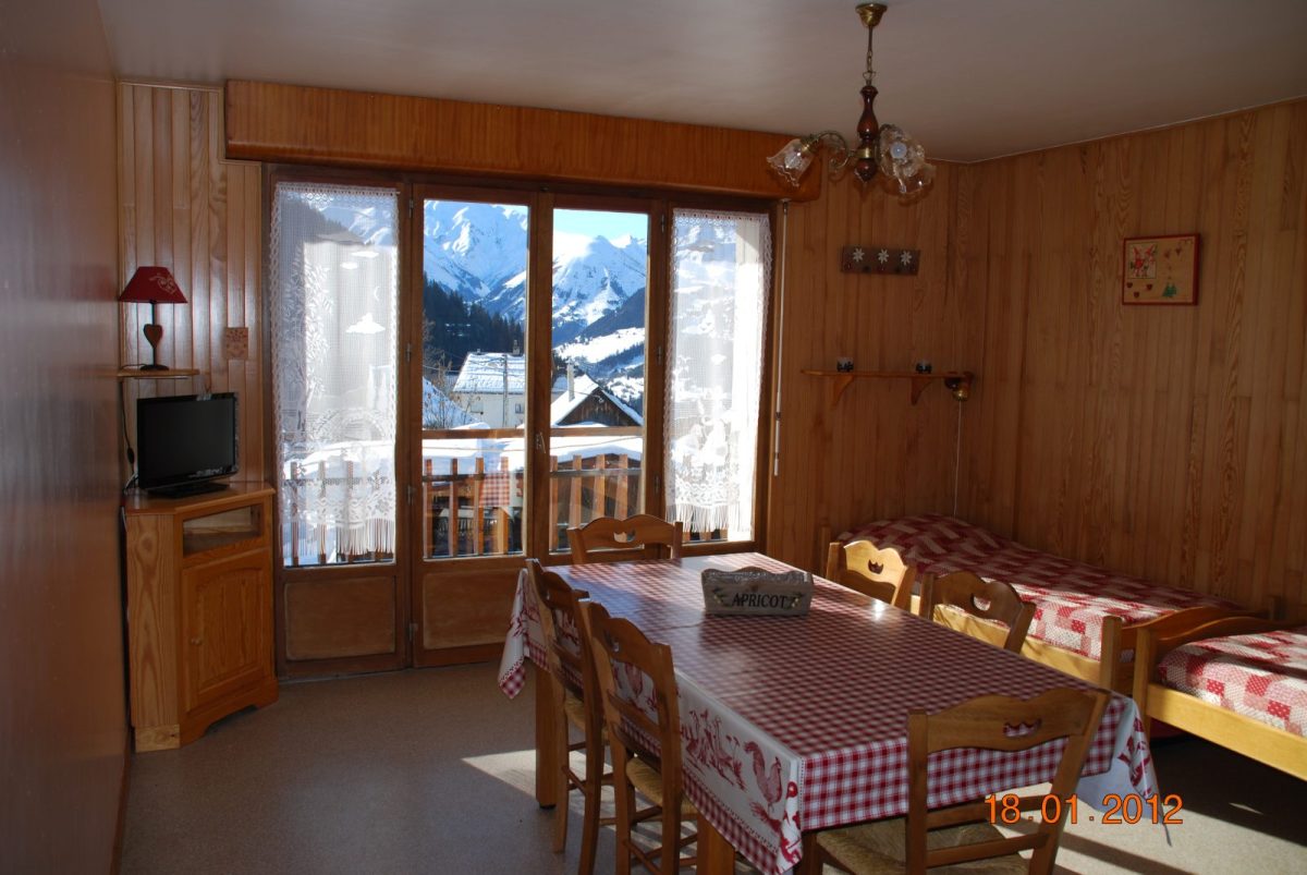 Appartement 2 pièces pour 6 personnes de 48m² situé au 1er étage d'une petite résidence de 9 logements, à 150 m des pistes de skis du Châtel et de la Vernette (Pré perroux) et à 250 m du centre du village (garderie, ESF, commerces…) cet appartement spacieux et lumineux, comprend : un coin cuisine équipé (lave-vaisselle, four, micro-onde, plaques gaz 4 feux, réfrigérateur avec congélateur en partie supérieure…), téléviseur et lecteur DVD ainsi qu'un lit simple en 80 et un lit banquette gigogne. Une salle de bain (douche) avec WC. Une chambre avec un lit double en 140 et un lit simple en 80. Balcon exposé Sud-ouest avec vue sur les pistes de skis et le glacier de l'Étendard. Parking et local à ski commun à la résidence.