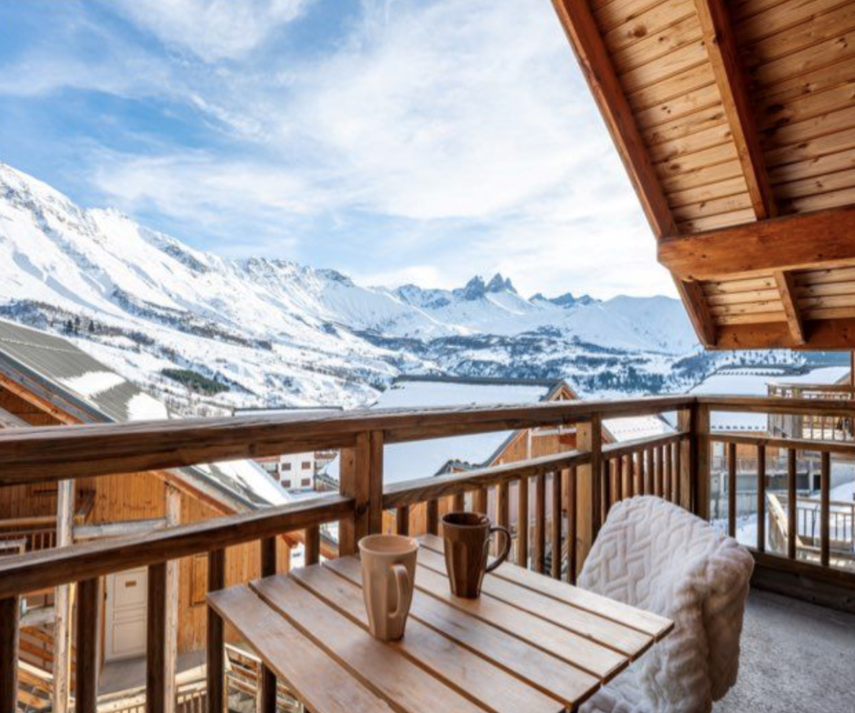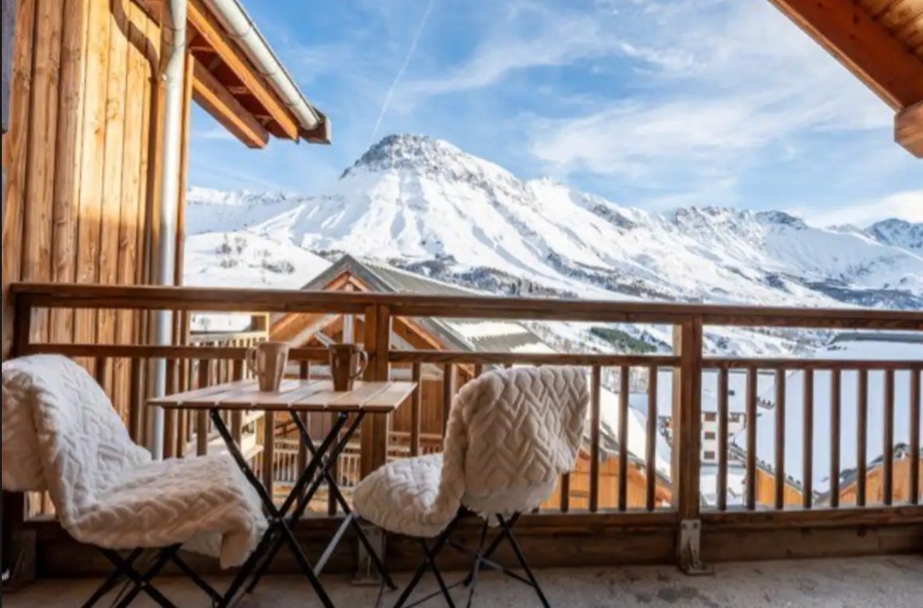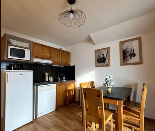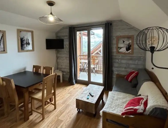 34m2 avec 1 chambre lit double, 1 coin montagne avec lit superposé, 1 lit gigogne (canapé), cuisine équipée et balcon avec vue imprenable.