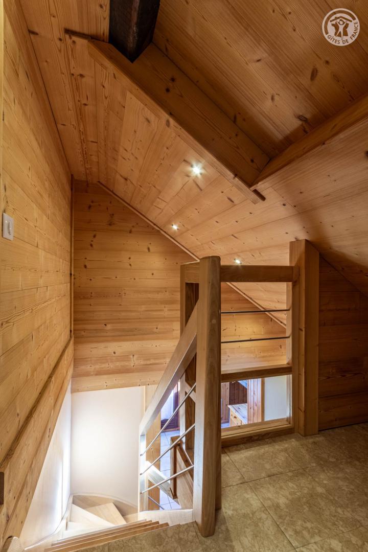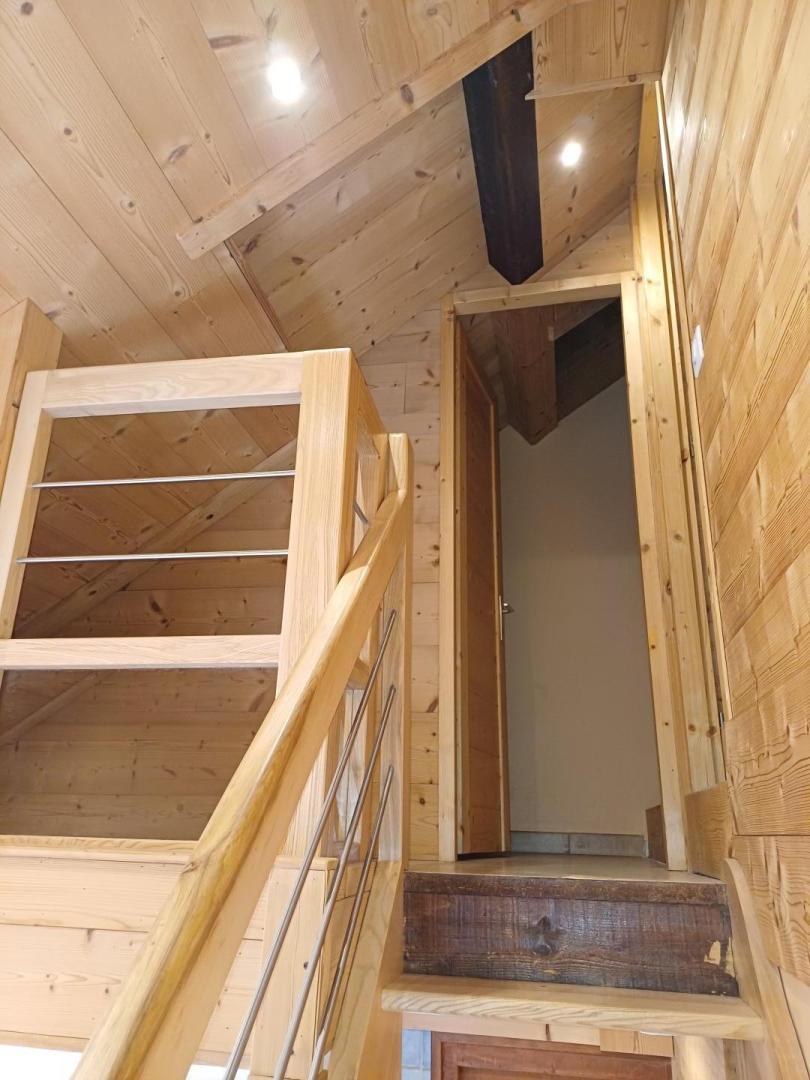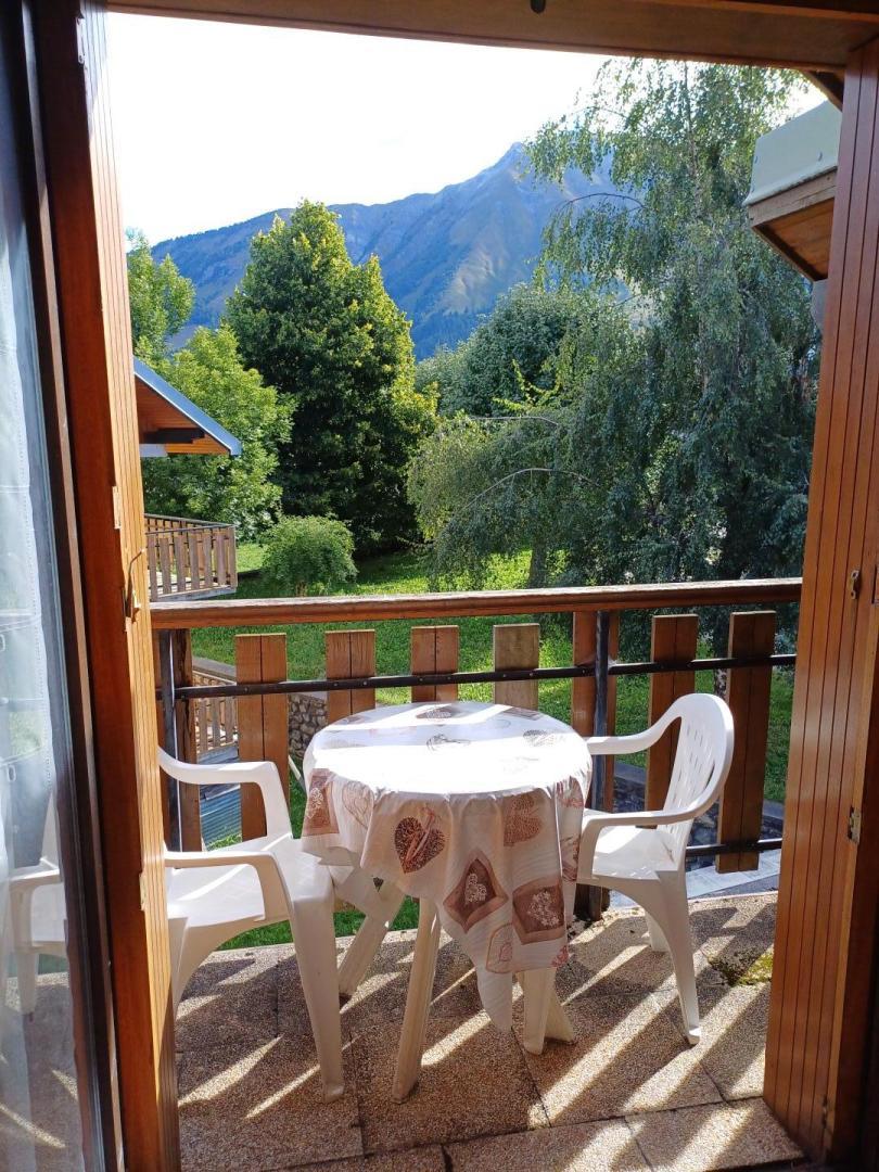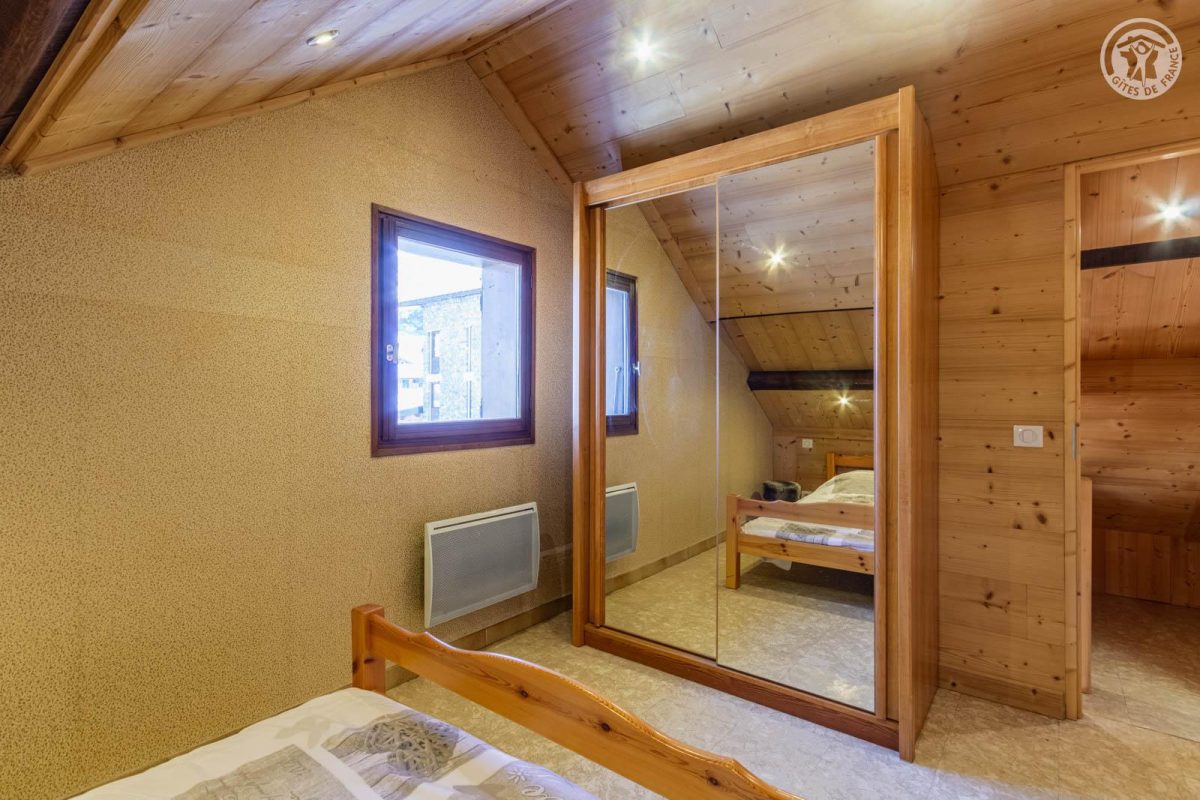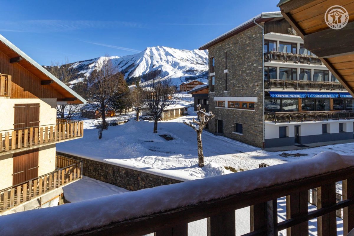 4 gîtes et un magasin de sports dans le même batiment. 2ème étage : séjour-cuisine coin salon (2 lits 1 personne gigognes 90 x 90 cm), 1 chambre (1 lit 2 personnes 140 x 190 cm), 1 chambre en sous-pente (2 lits 1 personne superposés 90 x 190 cm), salle d'eau (douche), WC séparé. Balcon. Lave-linge et sèche-linge dans buanderie commune à 200m (accès payant : 1 jeton gratuit ; au-delà, jetons payants). Terrain commun à 200m avec barbecue et espace repas extérieur. Surface totale au sol : 45m² parties mansardées comprises. Belle maison de pays au pied des pistes au coeur de la station village. Bon confort. Agréable et chaleureux. Balcon orienté sud. Belle vue dégagée sur le village et le massif. Terrain commun à 200m (balançoire, trampoline). Commerces, services et loisirs sur place.