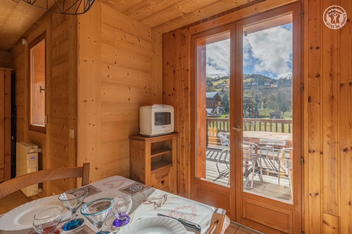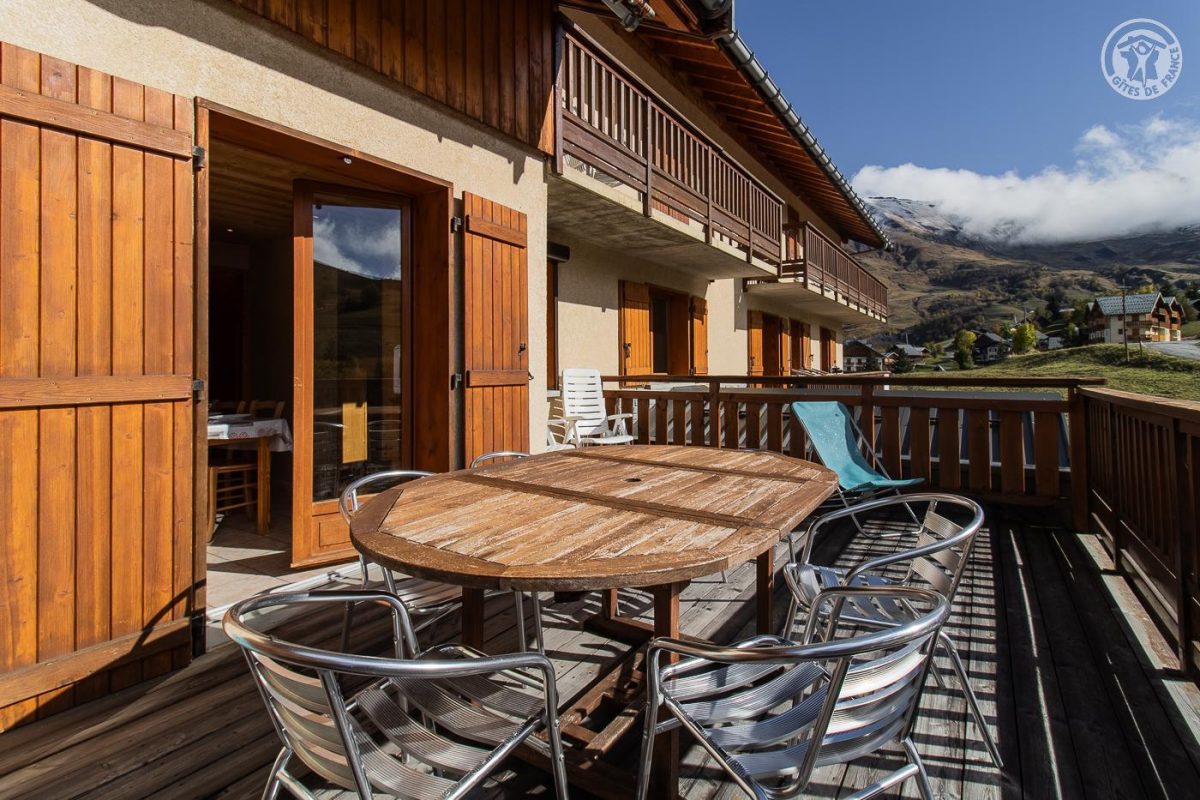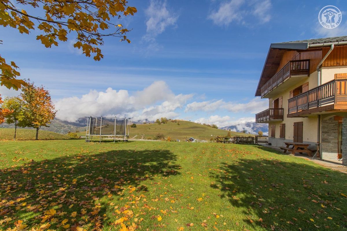 Appartement au 1er étage dans une résidence comprenant 13 logements : Salon avec un lit gigogne 2 personnes, cuisine. Une chambre triple (1 lit 1 personnes et 1 lit 2 personnes). Salle de bain (douche). WC séparé. Balcon terrasse avec un coin repas extérieur, communiquant avec l'appartement voisin. Terrain commun et espace bien-être partagé (spa et sauna) : voir les modalités avec le propriétaire. Buanderie commune (lave-linge et sèche-linge : accès payant avec 1 jeton gratuit ; au-delà jetons payants) De bon confort et rénové, dans un secteur calme. Équipements fonctionnels et décoration sobre. Vaste balcon terrasse ensoleillé,exposé plein sud et un terrain commun de 1000m² avec balançoire, barbecue, trampoline, table de ping-pong et terrain de pétanque. Espace bien être partagé avec sauna et spa thérapeutique. Vue sur le village, l'église et la vallée mauriennaise. La résidence O'Mikely se situe à 200 mètres du centre et des commerces, au pied des pistes.