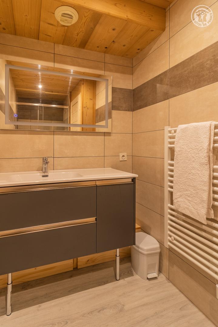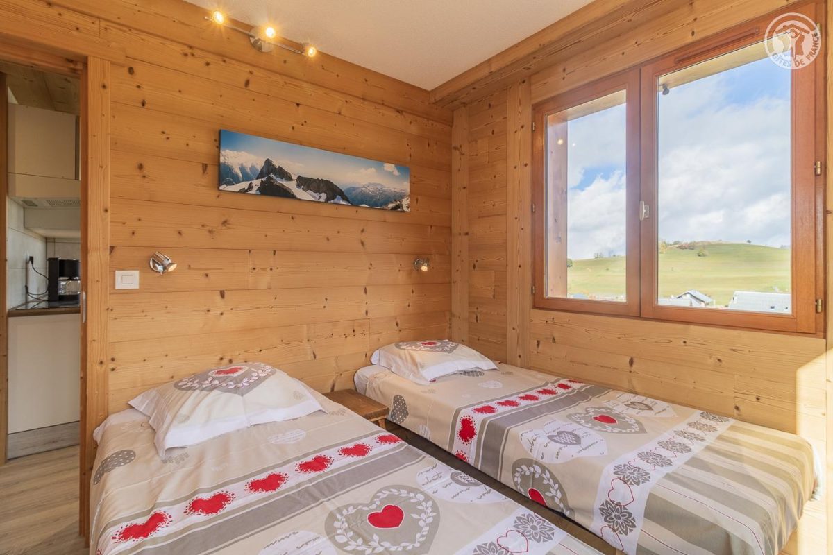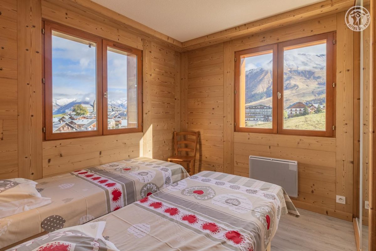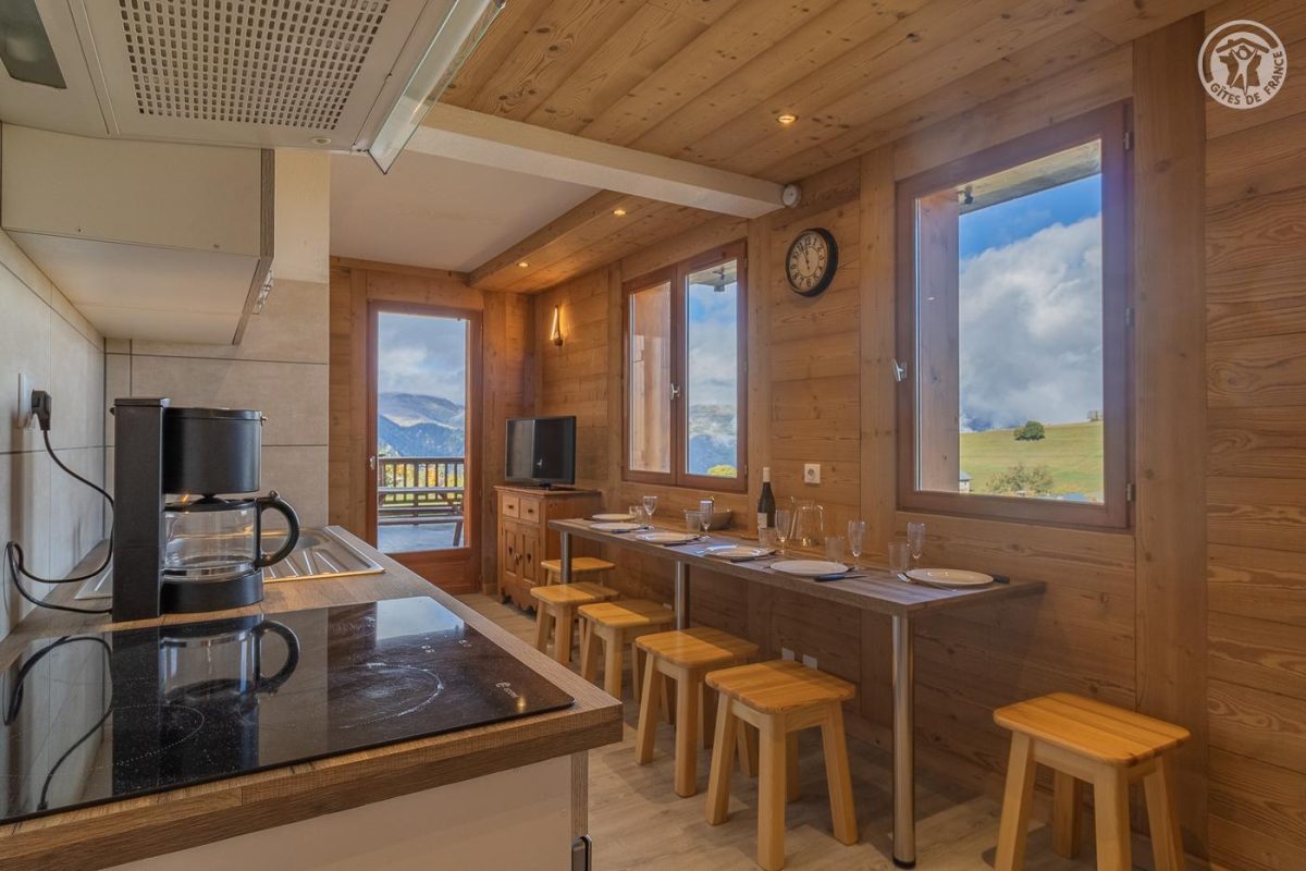 Appartement dans une résidence comprenant 13 logements : Au rez-de-chaussée : cuisine, séjour, salon avec un canapé convertible 2 personnes. Une chambre double (2 lits 1 personne). Une chambre double (2 lits superposés 1 personne). Salle de bain (douche). WC séparé. Balcon terrasse avec un coin repas extérieur. Terrain commun et espace bien-être partagé (spa et sauna) : voir les modalités avec le propriétaire. Buanderie commune (lave-linge et sèche-linge : accès payant avec 1 jeton gratuit ; au-delà jetons payants) De bon confort et rénové, dans un secteur calme. Équipements fonctionnels et décoration sobre. Vaste balcon terrasse et un terrain commun de 1000m² avec balançoire, barbecue, trampoline, table de ping-pong et terrain de pétanque. Espace bien être partagé avec sauna et spa thérapeutique. Vue sur le village, l'église et la vallée mauriennaise. La résidence O'Mikely se situe à 200 mètres du centre et des commerces, au pied des pistes.