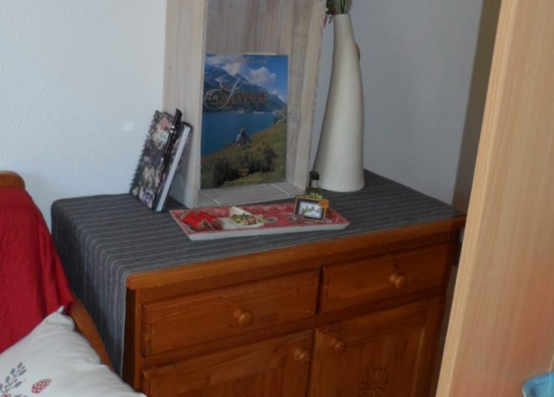 Entrée coin montagne avec BZ neuf 1 place. Séjour / cuisine entièrement équipé avec canapé lit, gigogne, TV, convecteur neuf, couette, oreiller et tout ménage fournis.