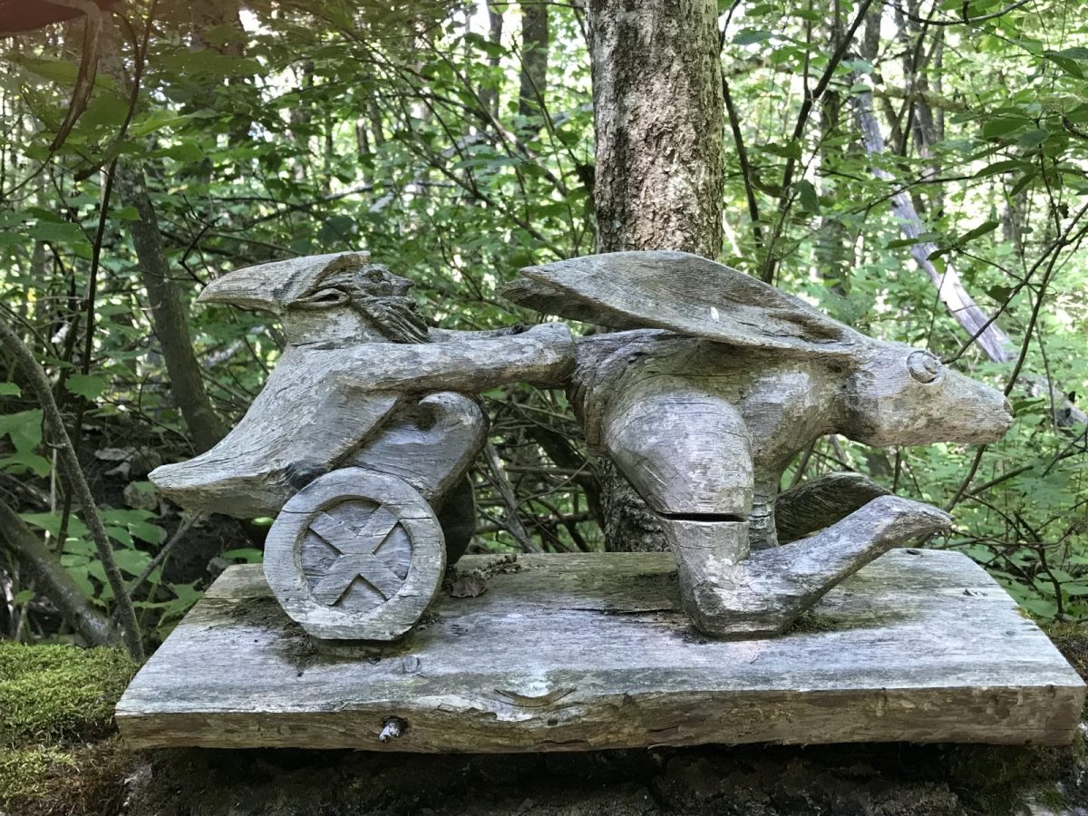 Vous serez observés sur le chemin par de curieuses créatures en bois. Elles sont l'oeuvre du sculpteur Sébastien Bizel-Bizzelot qui habite non loin de là, jetez un coup d'œil à la vitrine de son atelier "Les roses de bois" en repartant…