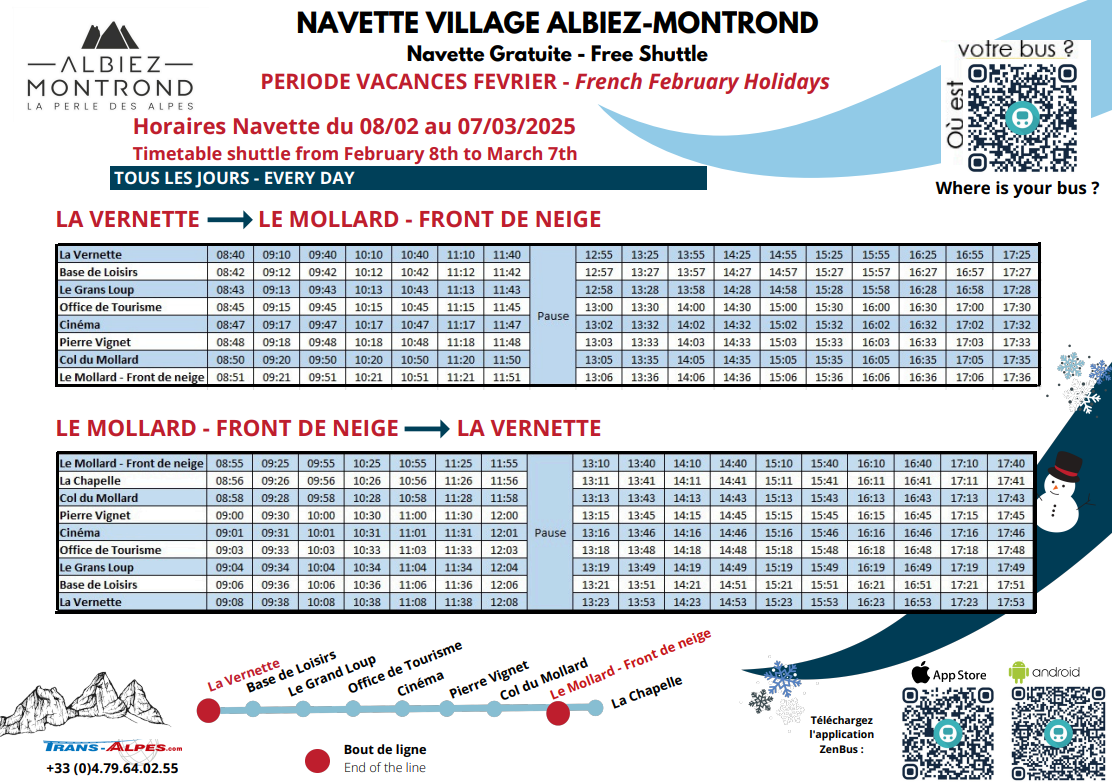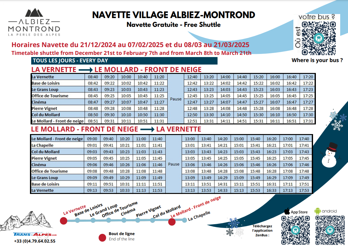 Du 21 décembre 2024 au 23 mars 2025, une navette est mise en place entre la gare Saint-Jean-de-Maurienne à Albiez