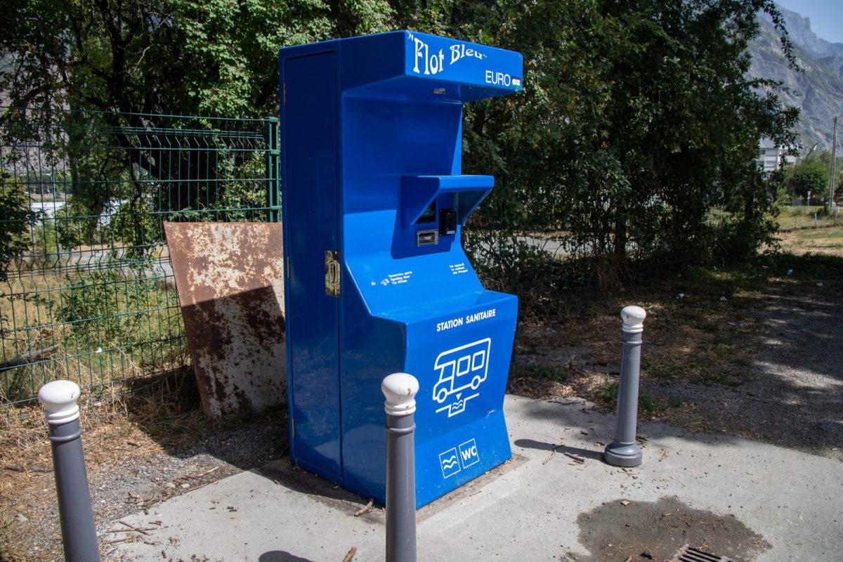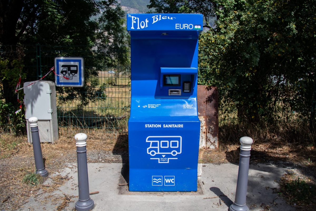 La borne Flot Bleu permet de se ravitailler en eau propre, compter 20 minutes de remplissage.