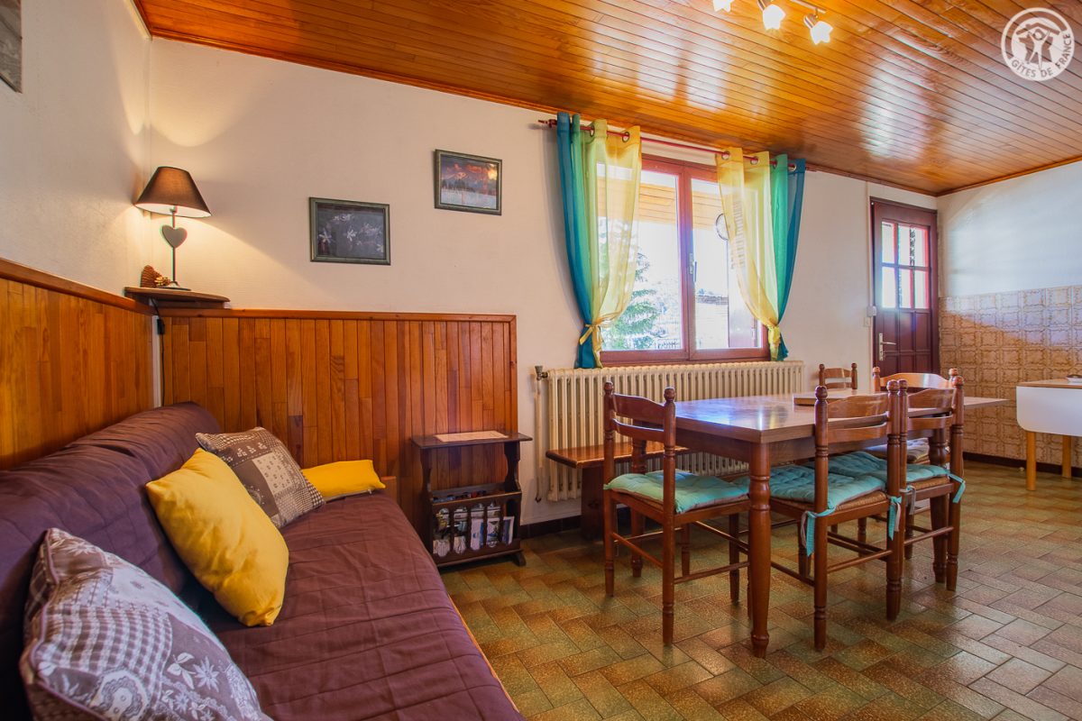 Ferme traditionnelle de 1920 rénovée au coeur du vieux village typique. Secteur résidentiel calme à 200m des pistes bordant le centre village. Large balcon d'angle exposé sud-est. Agréable jardinet aménagé + terrasse en commun (ping-pong). Belle vue dégagée sur le massif. Toute proximité des commerces et services.