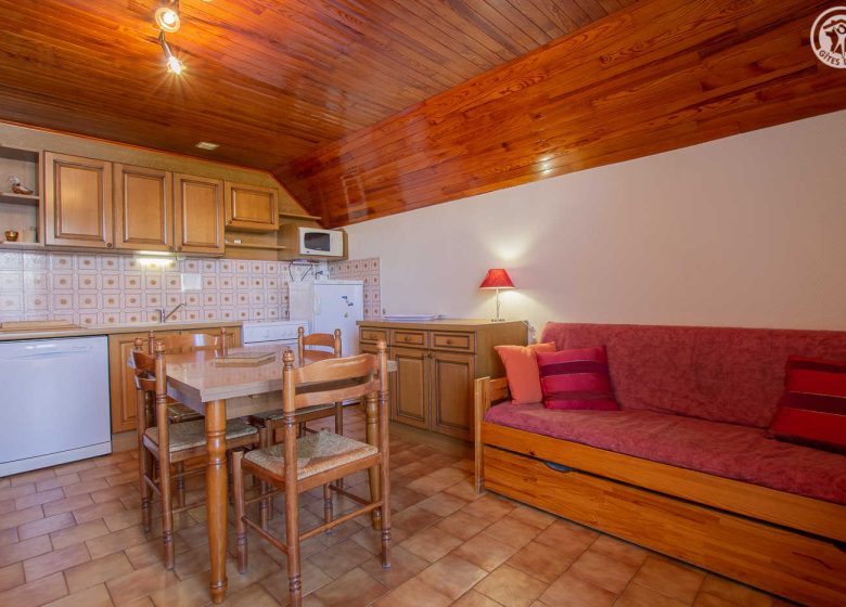 4 gîtes + 1 logement dans la maison du propriétaire. 2ème étage : séjour-cuisine coin salon (2 lits 1 personne gigognes), connexion Wifi, 1 chambre (1 lit 2 personnes, 2 lits 1 personne superposés), salle de bain (baignoire), lave-linge commun. Balcon. Cour + terrain communs. Ski Albiez à 200m, St Jean d'Arves/Les Sybelles 13 km, St Sorlin d'Arves 15 km.