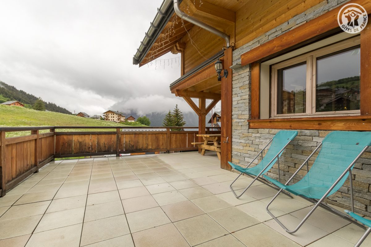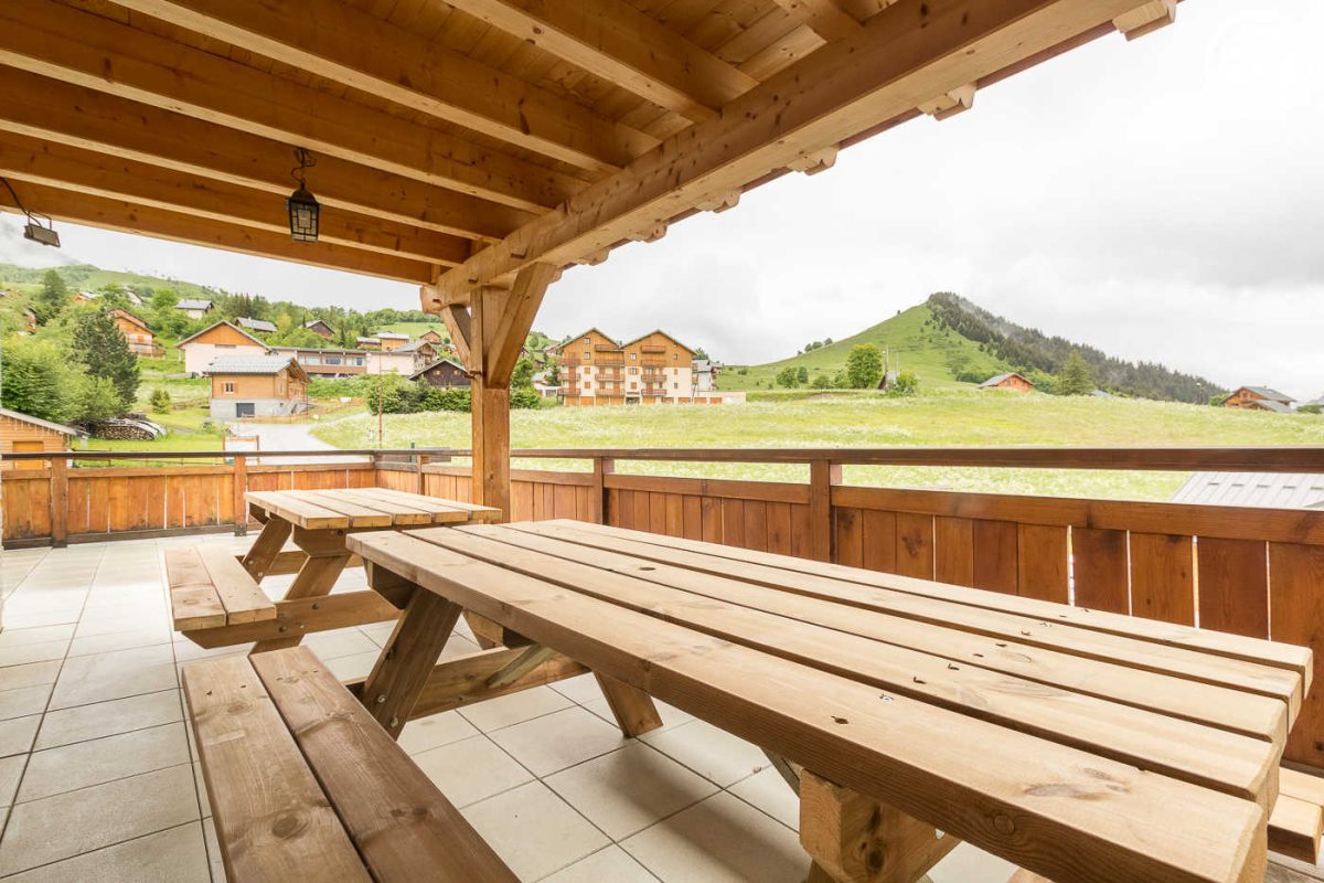 4 gîtes + magasin de sports dans la maison du propriétaire. Au 1er étage : séjour-cuisine et salon (2 lits 1 personne gigognes), 5 chambres (2 lits 1 personne en 80x190 cm / 1 lit 2 personnes en 140x190 cm et un canapé lit 2 personnes / 1 lit 2 personnes en 140x190 cm / 1 lit 2 personnes en 140x190 cm / 2 lits 1 personne en 90x190 cm avec salle d'eau - douche privative), salle de bain (baignoire + douche), 2 wc séparés. Large balcon-terrasse de 47 m2 en partie couverte, local à skis avec sèche-chaussures.