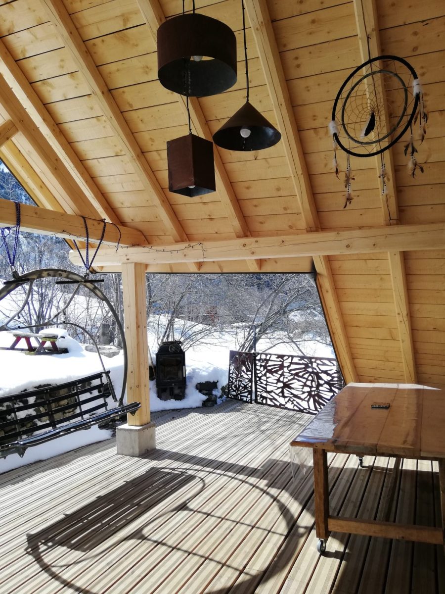Chalet authentique et confortable comprenant au rez-de-chaussée une entrée, une buanderie, un grand salon, 4 chambres (une avec lit en 90, une avec deux lits superposés soit 4 couchages, une avec un lit en 140 et une avec un lit en 160), salle de bain et WC séparés.