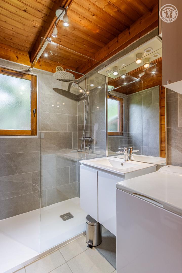 Chalet individuel. Rdc + 1er étage : séjour-cuisine coin salon, Wifi, 1 coin montagne (1 lit 1 pers.), 1 chambre (1 lit 2 pers.), mezzanine (1 lit 2 pers.), salle d'eau (douche), WC séparé. Balcon + terrasse. Terrain. Ski les Bottières / Domaine des Sybelles à 500m. Surface totale au sol : 54m² parties mansardées comprises.