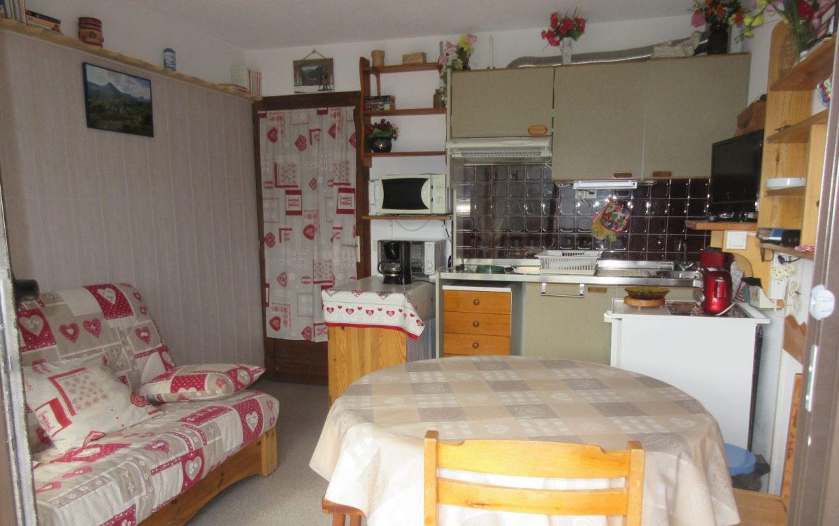 Studio 4 personnes situé dans la résidence Champfleuri au Chef-lieu du village, proche de toutes commodités et au départ d'un sentier de randonnée.