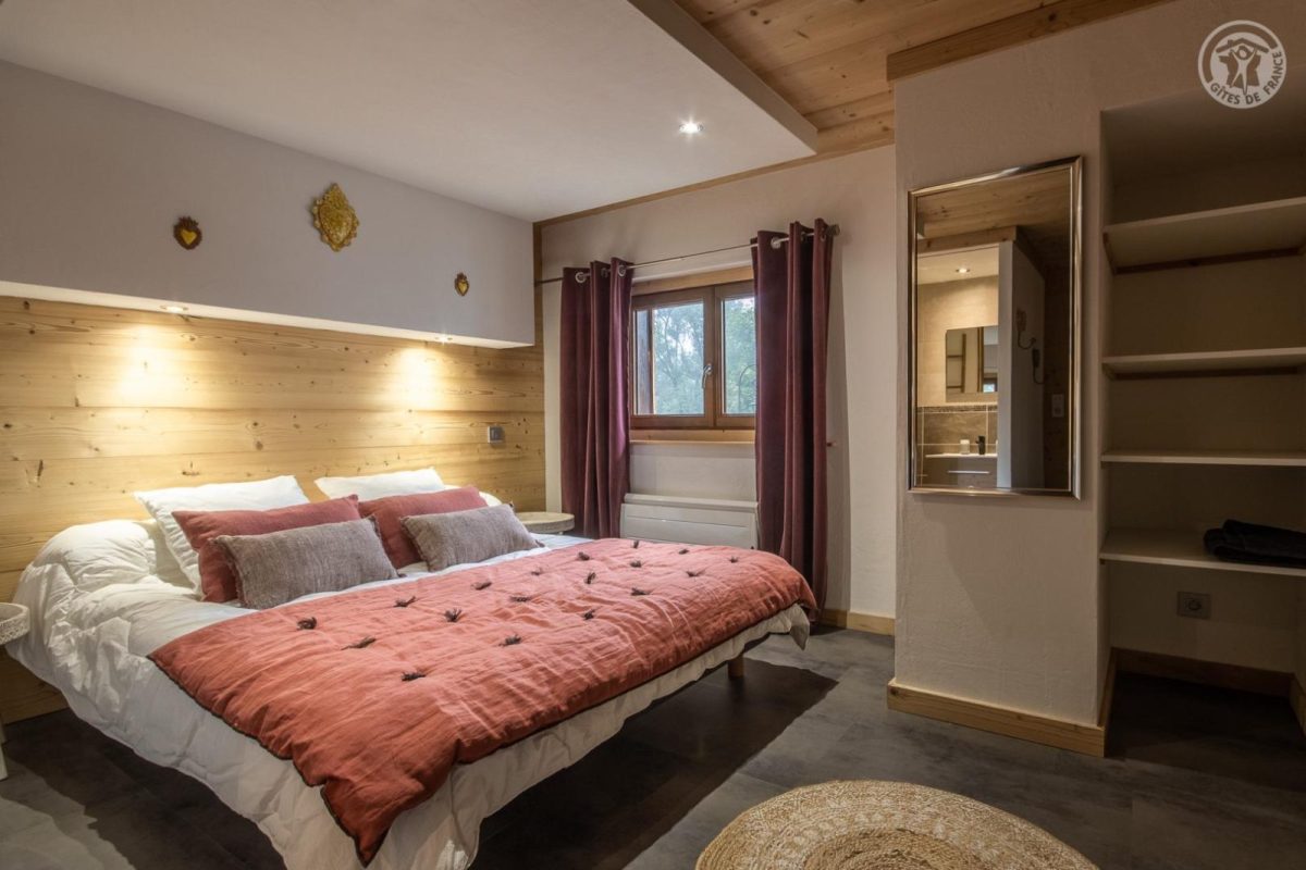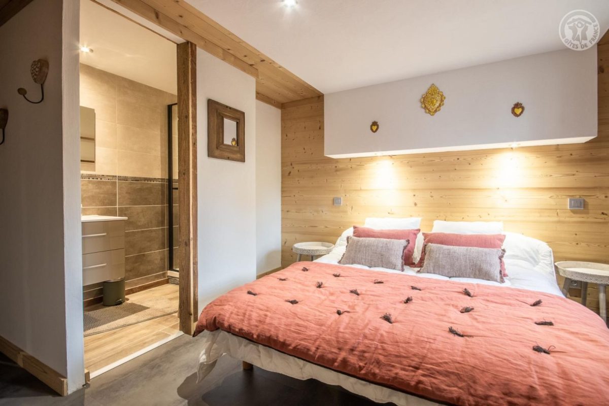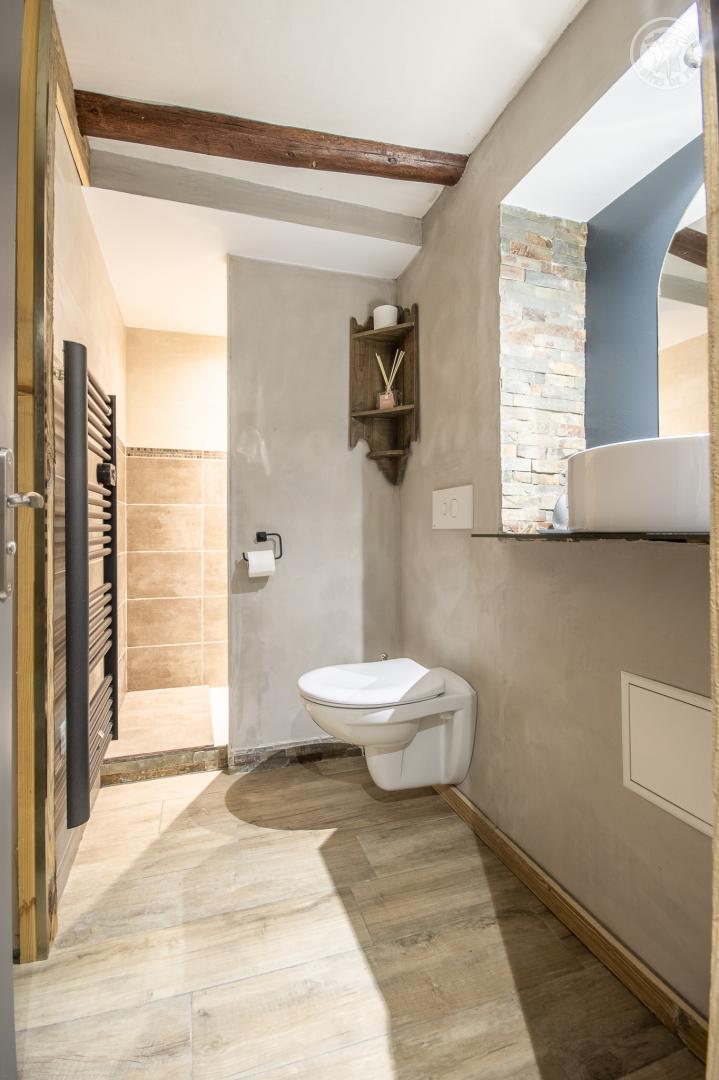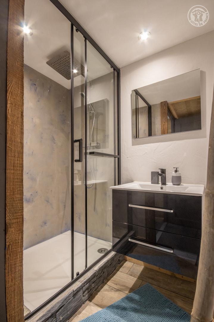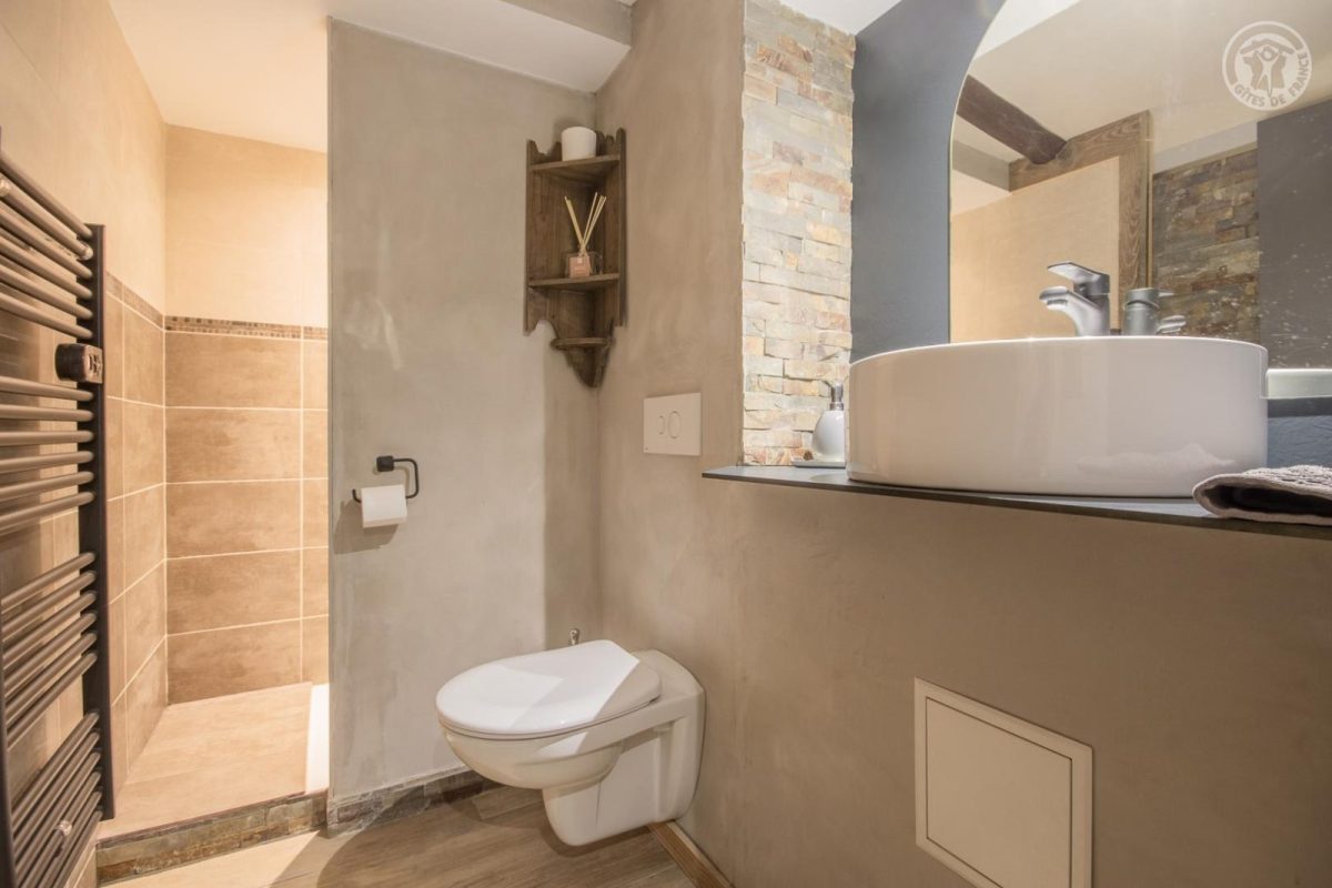 Gite sur deux niveaux, au rez-de-chaussée d'une maison mitoyenne à un autre gite. Accès indépendant par la terrasse extérieure. Rez-de-chaussée : cuisine-salon-séjour ouvert sur une grande terrasse, 1 chambre (1 lit 2 personnes en 160x190 cm, 1 salle d'eau (douche + WC), buanderie. 1er étage : 3 chambres avec salles d'eau privatives (douche+WC), (1 lit 2 personnes 160x190 cm / 1 lit 2 personnes 160x190 cm / 2 lits 1 personne 90x190 cm), WC. Parking privatif. Piscine intérieure et chauffée (7 x 3.50 x 1.50m), exclusivement réservé au gite.