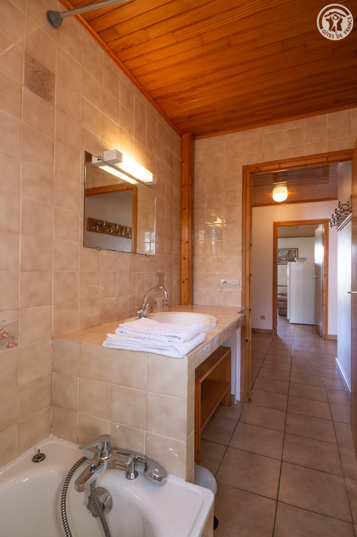 2 gîtes dans la maison du propriétaire. 1er étage : séjour-cuisine coin salon, 2 chambres (1 lit 2 personnes / 2 x 2 lits 1 personne superposés), salle de bain (baignoire), lave-linge et sèche-linge commun dans une buanderie. Double balcon. Ski alpin sur place.