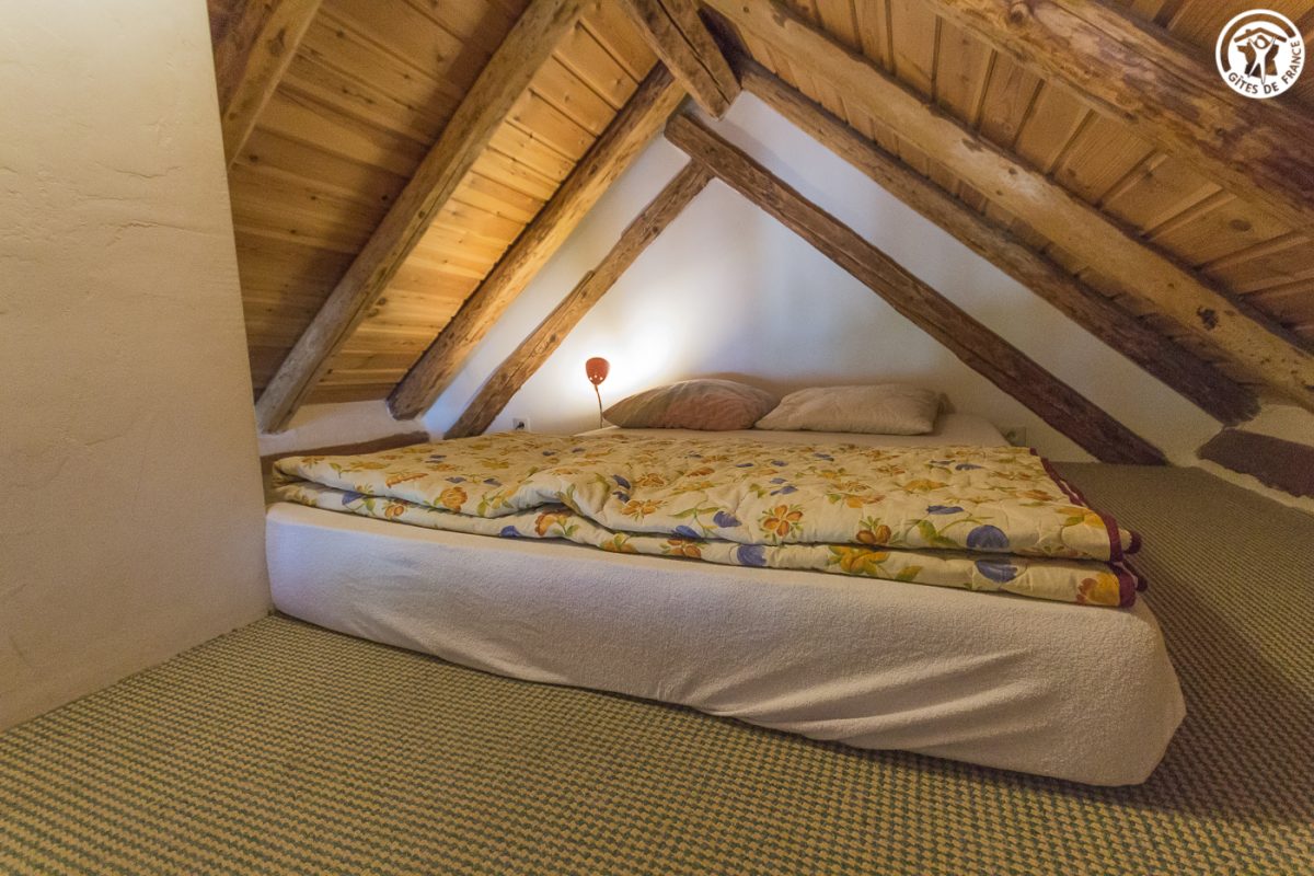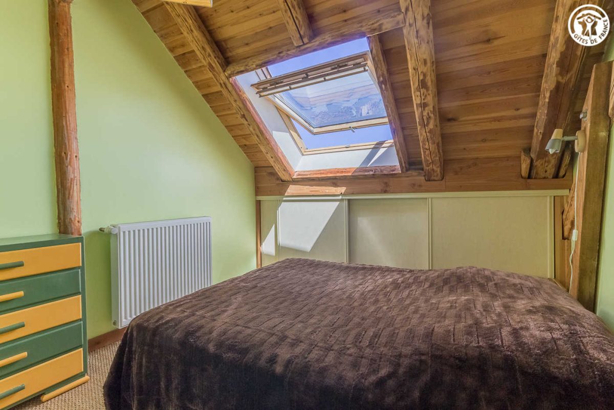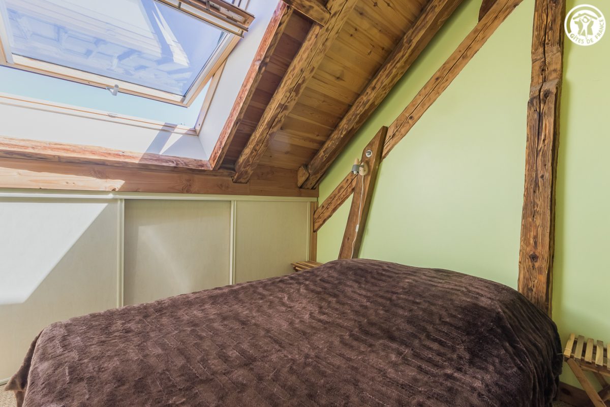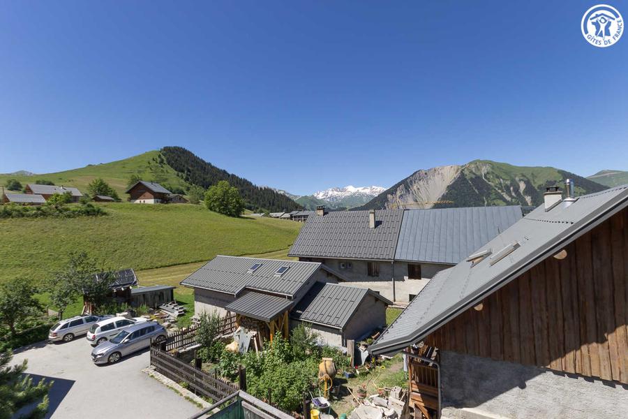 Chalet comprenant 2 gîtes. L'appartement est aménagé sous les combles avec entrée indépendante par escalier extérieur. 2ème étage : Pièce de vie offrant cuisine ouverte sur séjour, 3 chambres (2 lits 1 personne / 1 lit 2 personnes + 2 lits 1 personne superposés / 1 lit 2 personnes), 2 salles d'eau avec douche et WC. Grande baie vitrée avec vue dégagée sur les montagnes. Terrasse privative exposée Sud Ouest. Local à skis et vélos.