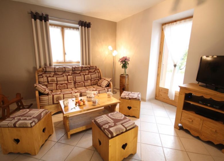 Maison comprenant 4 gîtes. RDC : séjour-cuisine-salon, WIFI, 3 chambres (2 lits 1 p. / 1 lit 2 p. / 2 lits 1 p.), salle de bains (baignoire balnéothérapie). Terrain + cour communs. Garage 1 place.