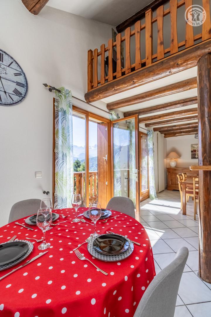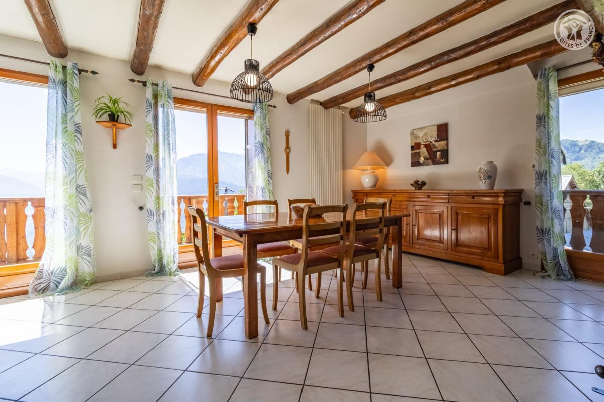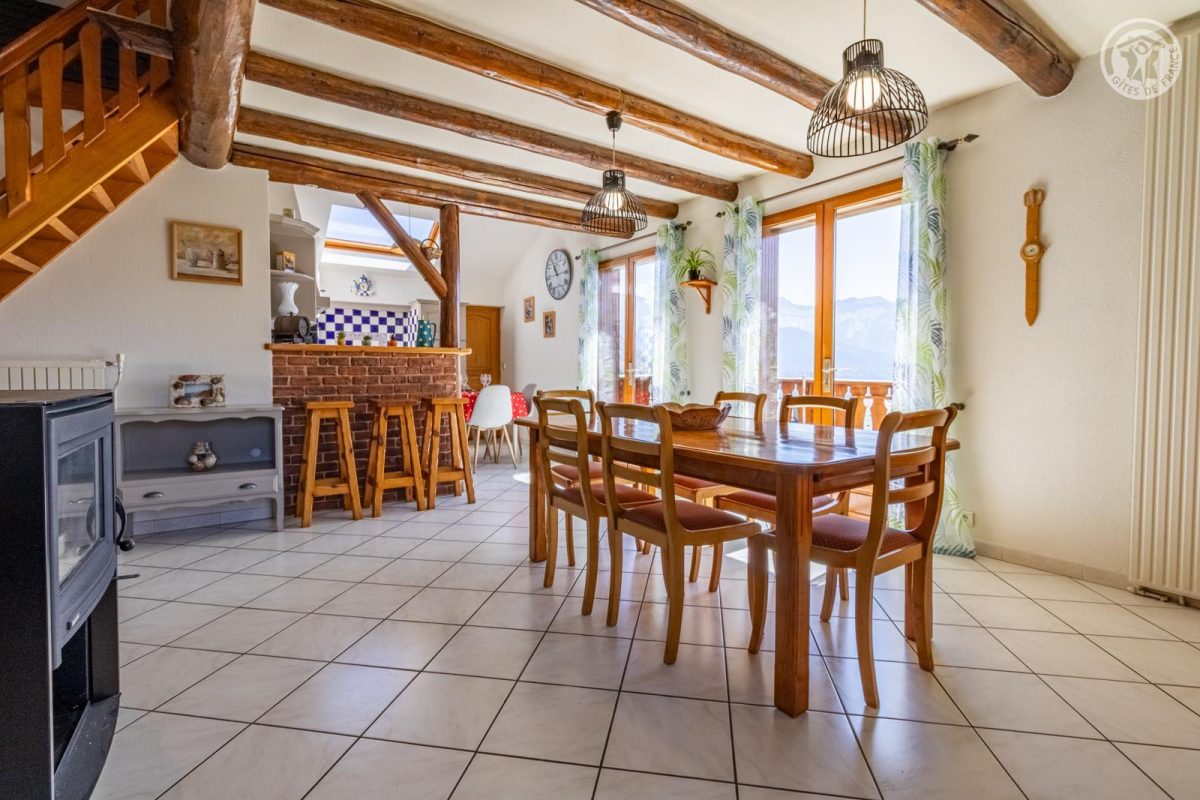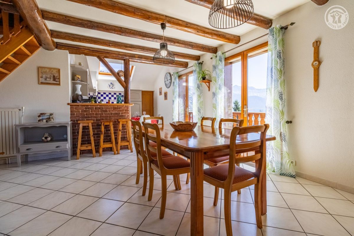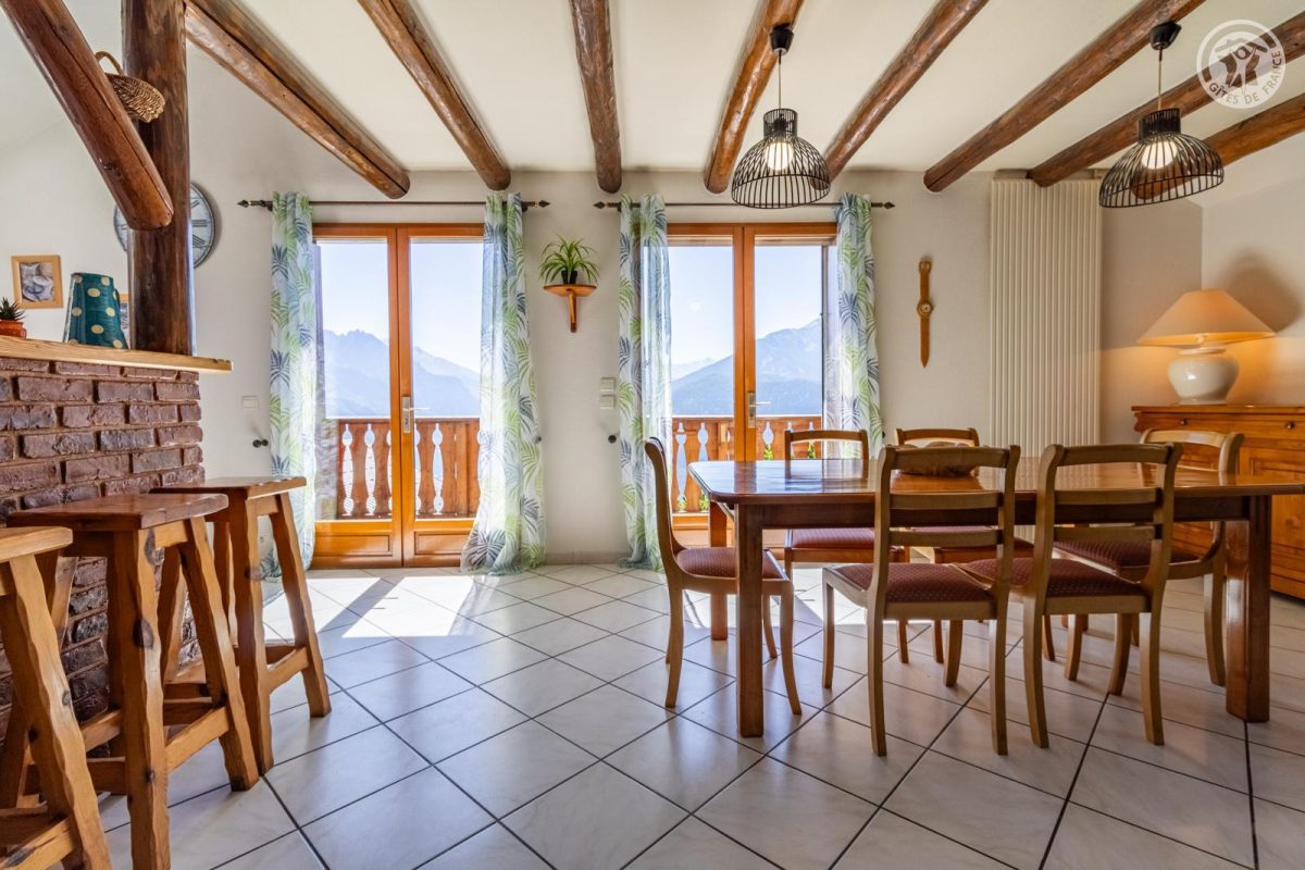 Dans la maison des propriétaires, sur 2 niveaux : entrée indépendante privative au rez-de-chaussée (rangements). Au 1er étage : salon-séjour-cuisine avec balcon, 3 chambres (1 lit 2 personnes 140x190 cm / 1 lit 2 personnes 140x190 cm / 2 lits gigognes 1 personne 90x190 cm), salle de bain (baignoire + douche), wc séparé, terrain non clos commun et espace repas extérieur. Stationnement privatif (2 places). Situé dans un charmant hameau paisible de Jarrier, à seulement 8 km des pistes, ce vaste appartement vous accueille au cœur d’un cadre naturel exceptionnel, entre prairies et forêts. Le gîte offre de beaux volumes et une ambiance chaleureuse, avec trois chambres, une grande pièce de vie lumineuse agrémentée d’une mezzanine, et un balcon orienté sud-est offrant une vue panoramique sur les majestueuses Aiguilles d’Arves. À l’extérieur, vous profiterez d’un terrain privatif avec un espace repas ombragé, équipé de transats pour vos moments de détente en pleine nature. Un lieu idéal pour se ressourcer été comme hiver, dans un environnement calme et authentique.