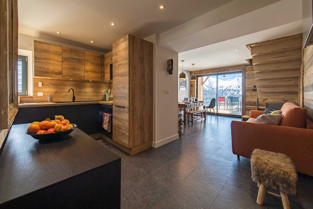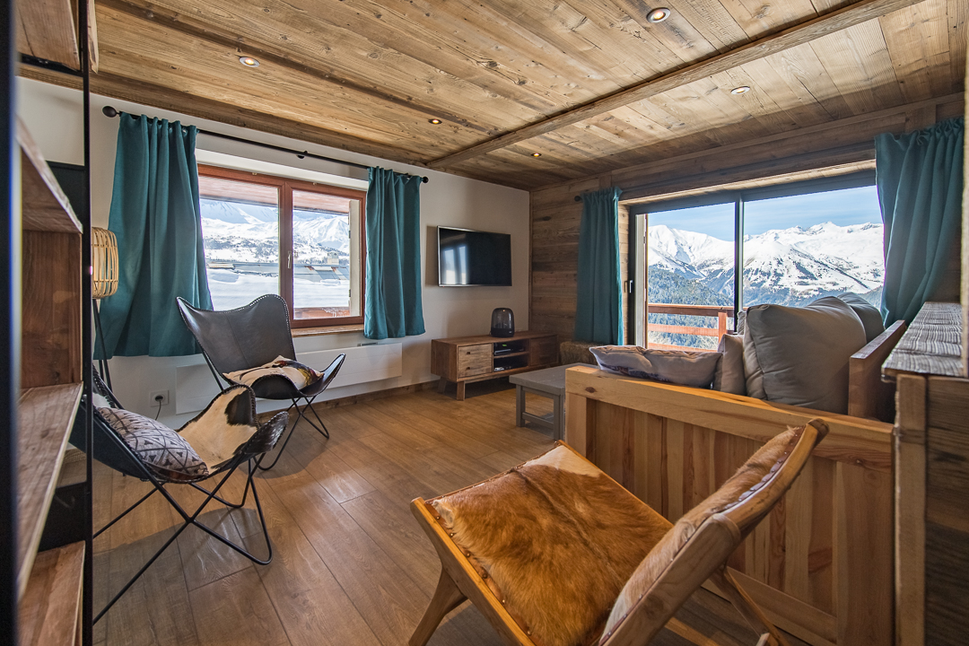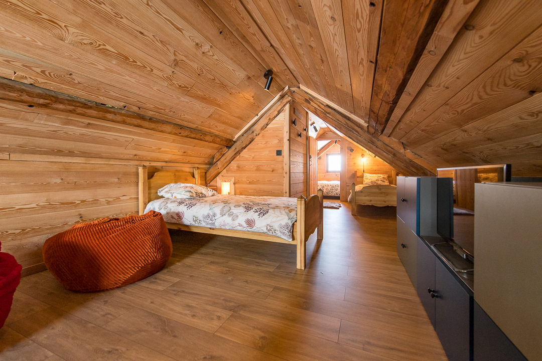 Maison individuelle sur 3 niveaux. Rez-de-chaussée (accès par une dizaine de marches) : séjour-cuisine coin salon (1 canapé convertible Rapido Express 2 personnes 160x200 cm) donnant sur une terrasse, une salle d'eau (douche), WC séparé. 1er étage : salon (1 canapé gigogne 2 lits 1 personne) avec télévision (avec câble HDMI/Jack pour portable Apple), enceinte connectée, balcon et terrasse, 1 chambre (1 lit 2 personnes 160 x 200cm), une salle d'eau (douche et WC). 2ème étage : combles en sous-pente aménagées avec 3 lits 1 personne (90 x 200cm) et une chambre en enfilade (1 lit 2 personnes 160 x 200cm). Surface totale au sol : 105 m² parties mansardées comprises. A 400 m des pistes de ski, au cœur du hameau du Mollard, cette maison individuelle propose des espaces de vie distincts, avec une salle à manger au rez-de-chaussée et un salon à l'étage. Les enfants seront ravis de profiter de l'espace sous les toits, à l'ambiance refuge de montagne, aménagé en couchages et coin jeux. L'hiver, le stationnement se fait sur le parking public à 50 m ; l'été, il est possible de décharger la voiture devant la maison.