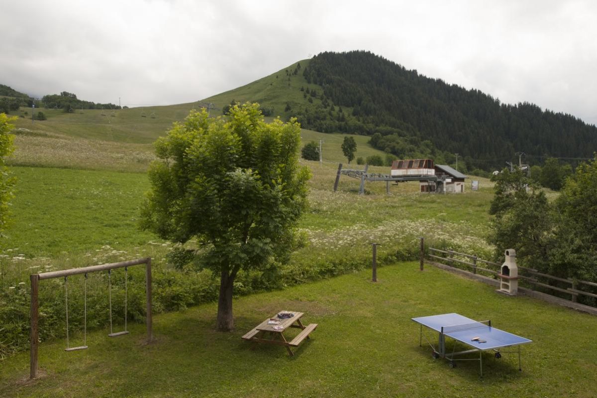 Maison de pays située en pied de pistes. Secteur résidentiel calme bordant le centre du village typique. Bel environnement préservé de prairies. Bon confort. Agréable et lumineux. Terrasse exposée plein sud. Vaste espace extérieur aménagé commun (balançoire et ping-pong). Abri jardin sécurisé. Belle vue très dégagée sur le massif. Toute proximité des commerces et services.