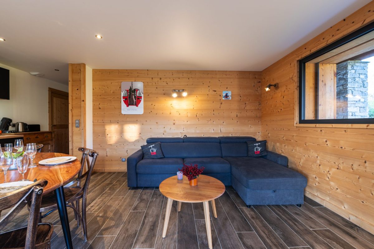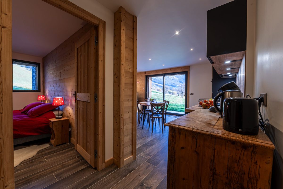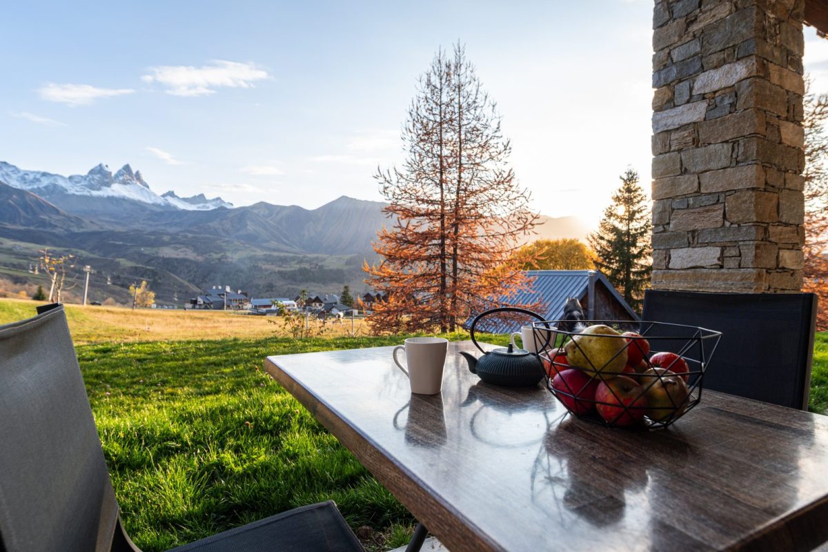 Depuis ses grandes fenêtres, admirez une vue imprenable sur les montagnes environnantes : les Aiguilles d’Arves, le Mont Emy et les pistes de ski l'hiver.