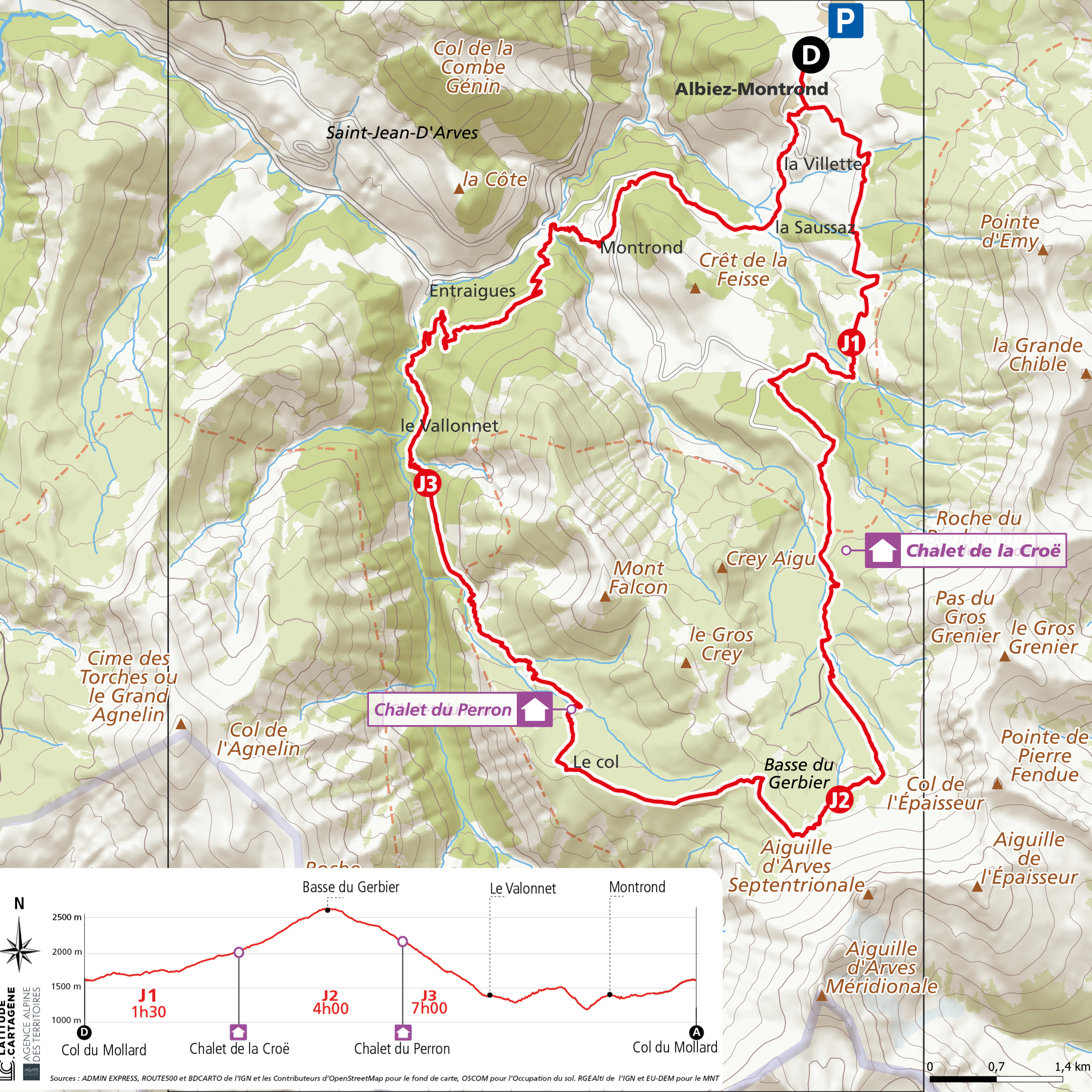 3/ Chalet du Perron -> Col du Mollard : Distance : 15.1 km / D+ : 674m / D- : 1186m / Tps : 6h05.