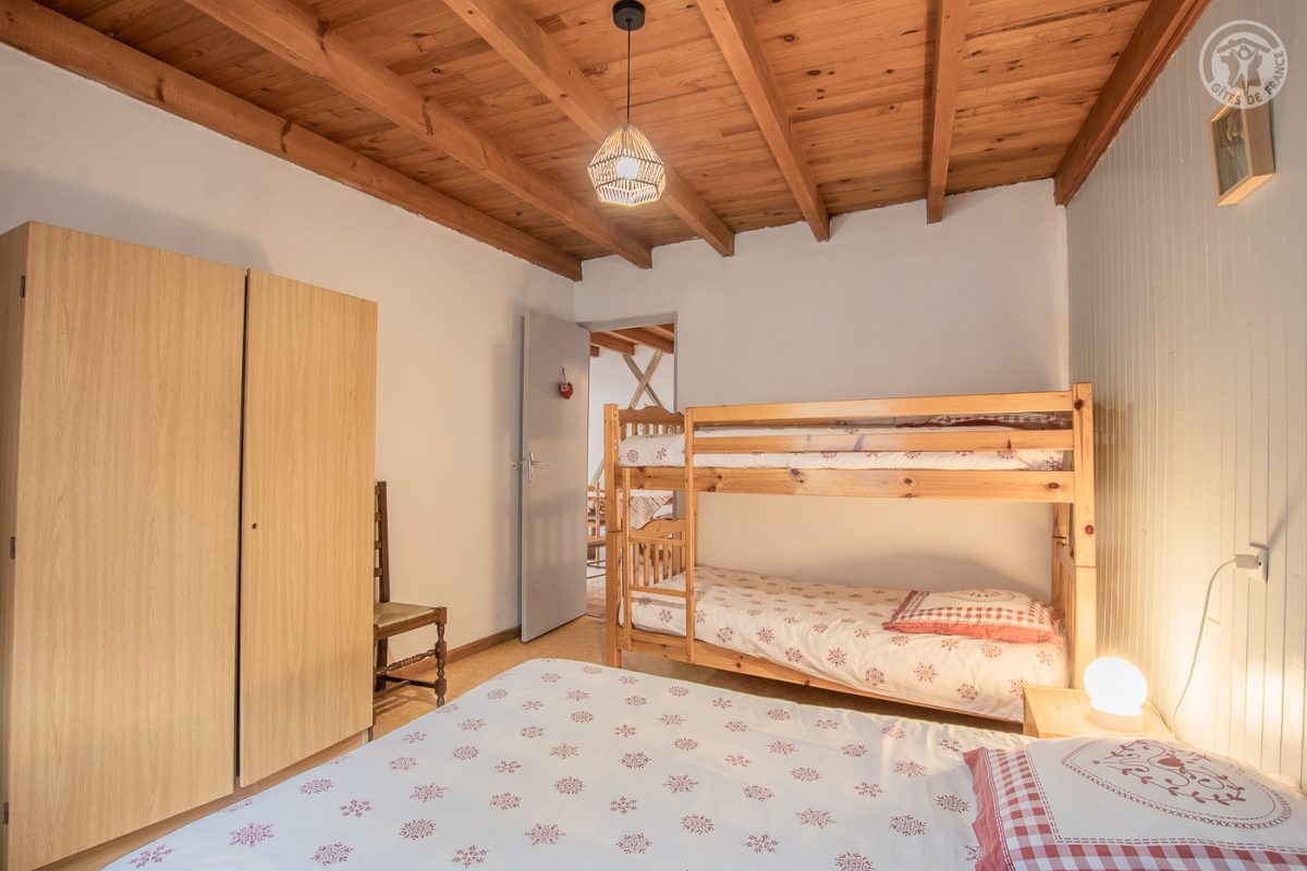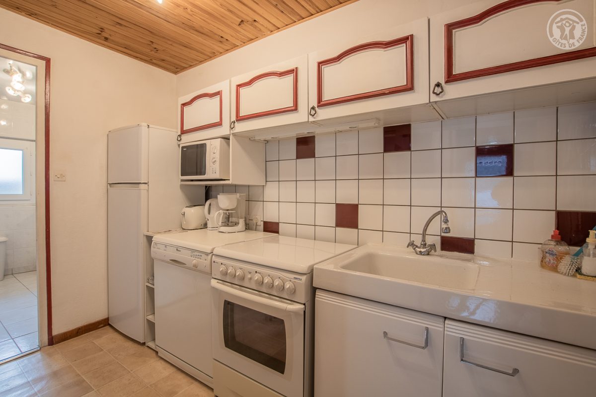 Gite au 1er étage de la maison de la propriétaire. Accès indépendant par un escalier extérieur comprenant un séjour-cuisine, un salon, 2 chambres (1 lit 2 personnes 140x190 cm / 2 lits 1 personne superposés 90x190 cm ; 1 lit 2 personnes 140x190 cm), une salle d'eau (douche et 2 vasques), un WC séparé. Balcon de façade. Jardin avec barbecue, en commun avec la propriétaire.