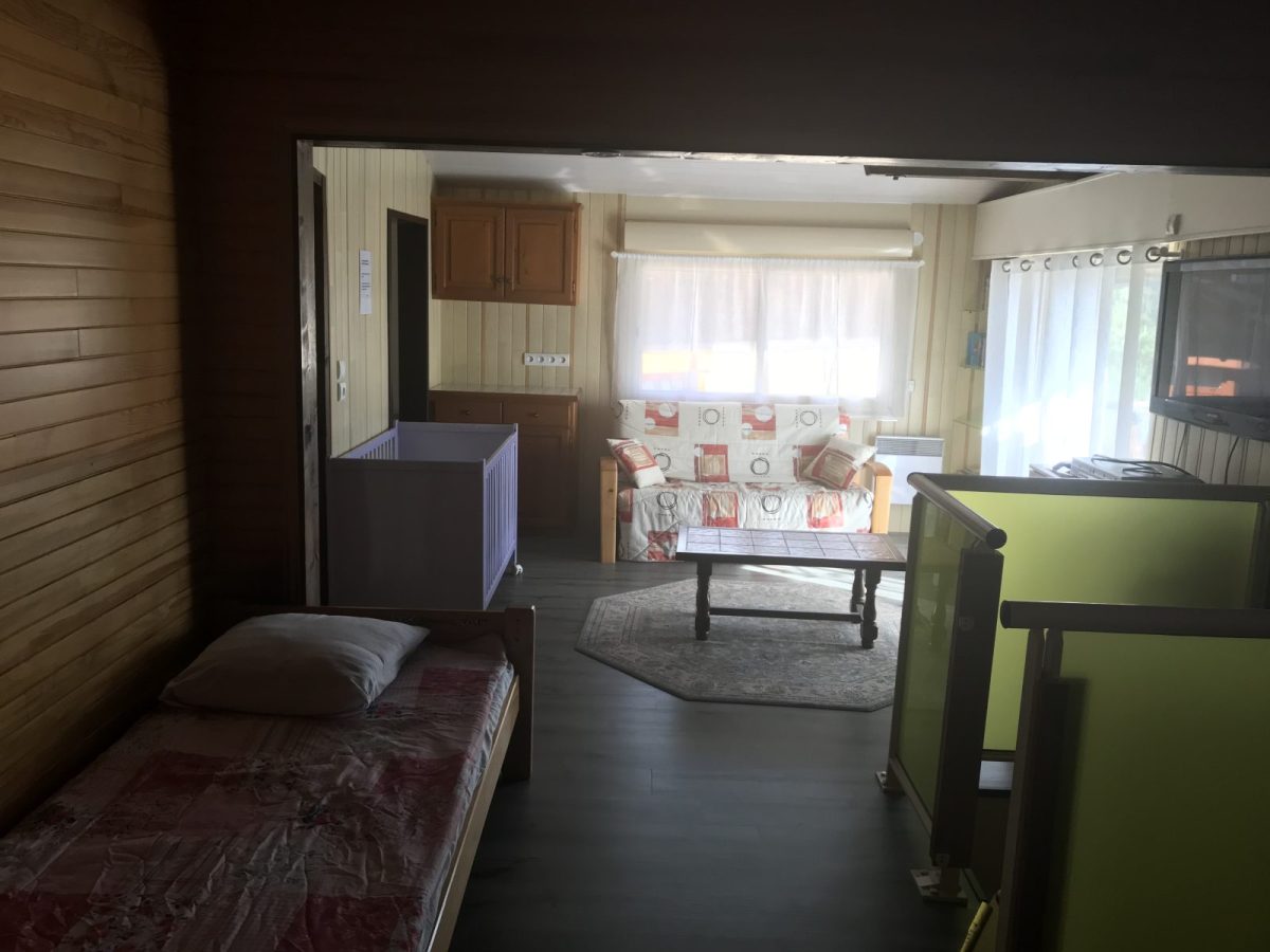 Notre chalet est équipé à l'étage de 2 chambres doubles, 2 chambres avec 2 lits superposés, un salon comprenant canapé convertible + un lit simple + un lit bébé.