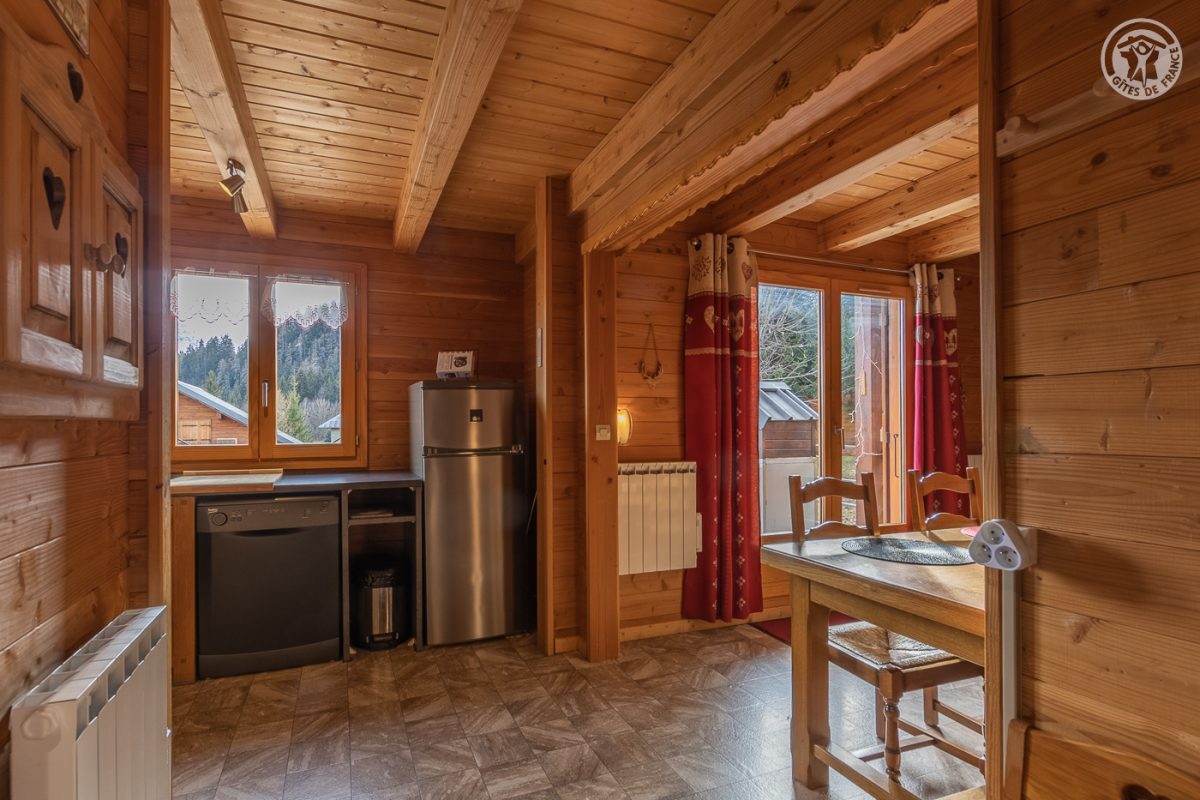 Chalet individuel sur 2 niveaux. Accès à pied 50m par un chemin en herbe depuis le parking commun, puis l'entrée du chalet par un escalier extérieur. Rez-de-chaussée : entrée, un séjour-cuisine avec coin salon donnant sur la terrasse, WC séparé. 1er étage : 3 petites chambres en sous-pente (1 lit 2 personnes 140x190 cm / 1 lit 2 personnes 140x190 cm / 1 lit 1 personne 90x190 cm), salle d'eau (douche avec hauteur à 1,70 m, WC). Ce chalet individuel en bois est situé dans un ensemble de 7 chalets identiques, à 600 m du téléski des Marmottes permettant de rejoindre La Toussuireà 8 km et le domaine des Sybelles, suivant l'enneigement. Sinon, navette gratuite uniquement pendant les vacances scolaires d'hiver. Le chalet Le Sabot de Vénus a été entièrement rénové en conservant son cachet montagnard avec une touche de modernité. Très fonctionnel, tout a été pensé pour un séjour confortable et de qualité.
