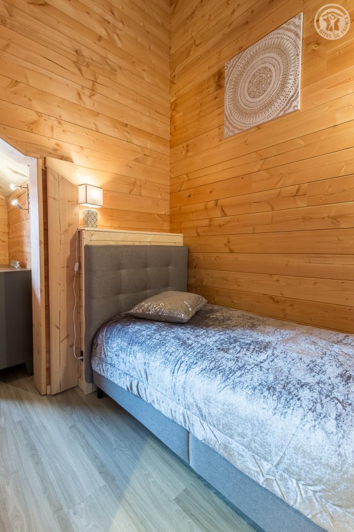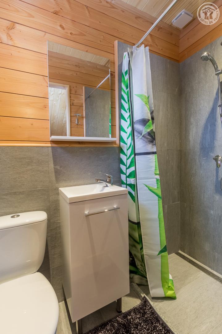 Chalet individuel sur 2 niveaux (accès par 1 marche). Rez-de-chaussée : séjour-cuisine-salon, 2 chambres avec salle d'eau (douche) ouverte privative (1 lit 2 personnes 140x190 cm/ 1 lit 2 personnes 140x190 cm), WC, buanderie. 1er étage : 2 chambres (2 lits 1 personne 90x190 cm / 2 lits 1 personne 90x190 cm) et 3 chambres doubles avec balcons (1 lit 2 personnes 140x190 cm) avec salles d'eau privatives (douche + WC), WC, salle d'eau (douche). Mezzanine (hauteur inférieure à 1,80m) avec 1 lit 2 personnes (140x190 cm). Vaste terrasse avec bain norvégien. Terrain et parking privatif. Chalet contemporain et cosy avec bain norvégien, situé à 500m des pistes des Bottières. Petit plateau exposé sud-ouest, en bordure de forêt et prairies. Très calme. Grand confort. Vaste terrasse aménagée avec bel espace extérieur. Superbe vue dégagée sur le massif.