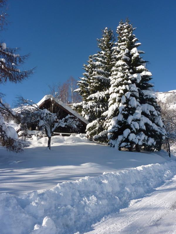 Chalet individuel sur 2 niveaux (1er + 2ème étage / accès de plain pied depuis le parking) : séjour-cuisine coin salon, 1 chambre (1 lit 2 pers.), 1 mezzanine en sous-pente (hauteur inférieure à 1.80m / 1 lit 2 pers.), salle de bains (petite baignoire). Balcon + terrasse + terrain privés. Ski les Bottières/domaine les Sybelles à 200m (départ & accès au chalet skis aux pieds), La Toussuire/domaine les Sybelles 9 km, le Corbier/domaine les Sybelles 10 km. Ski de fond la Toussuire 9 km. Totale au sol 33 m² parties mansardées incluses.