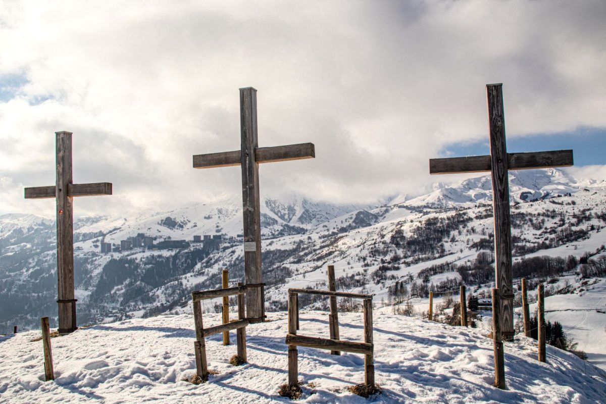 Au départ du charmant village des Bottières, ce bel itinéraire en raquettes vous conduit jusqu’au site emblématique des Trois Croix, perché au-dessus du domaine, à la frontière entre Fontcouverte et La Toussuire. À la fois sportif et contemplatif, ce parcours séduit par la richesse de ses paysages et la douceur progressive de sa montée, idéale pour une sortie hivernale en famille ou entre amis. Tout au long de l’ascension, les ouvertures dans la végétation laissent entrevoir de magnifiques vues sur les Aiguilles d’Arves, véritable repère visuel de la vallée de la Maurienne. A l'arrivée, le chemin débouche sur un promontoire dégagé orné des Trois Croix, symboles de protection du village et repères pour les montagnards.