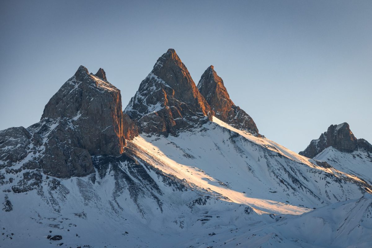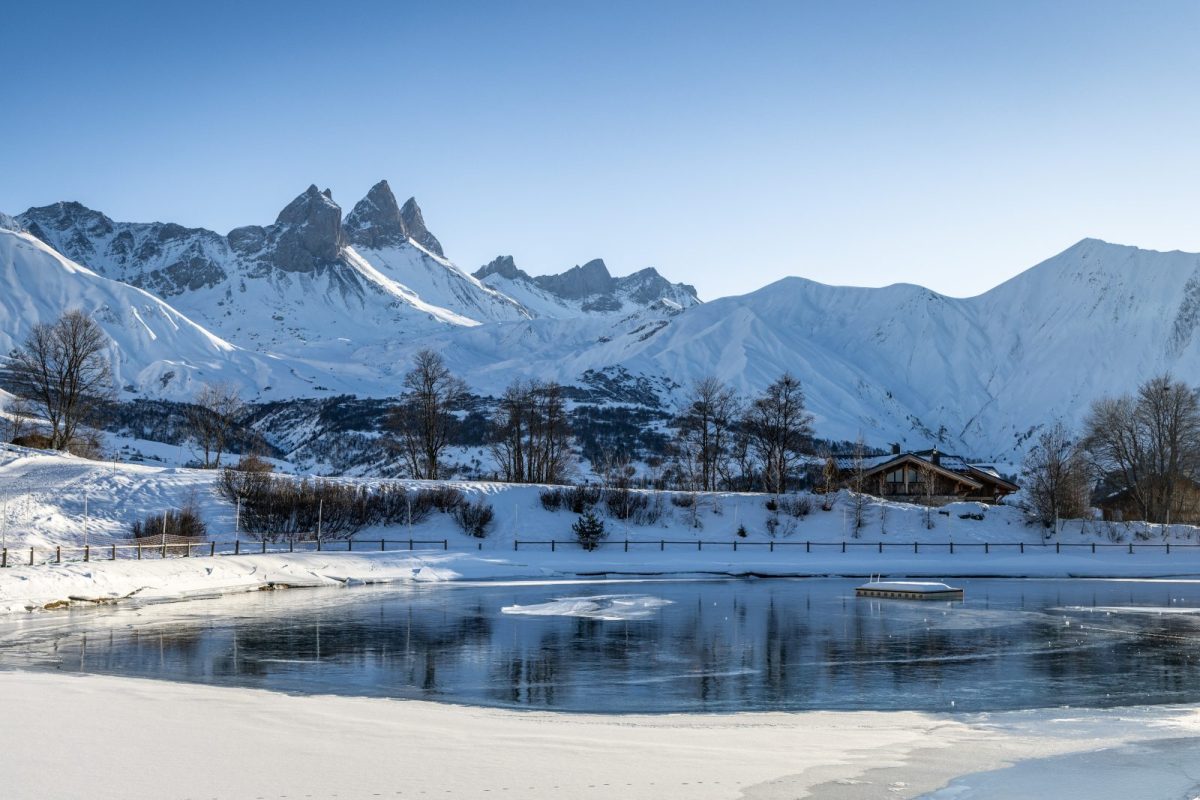 Albiez-Montrond s'étend sur un plateau qui domine la vallée de la Maurienne, face aux Aiguilles d'Arves.