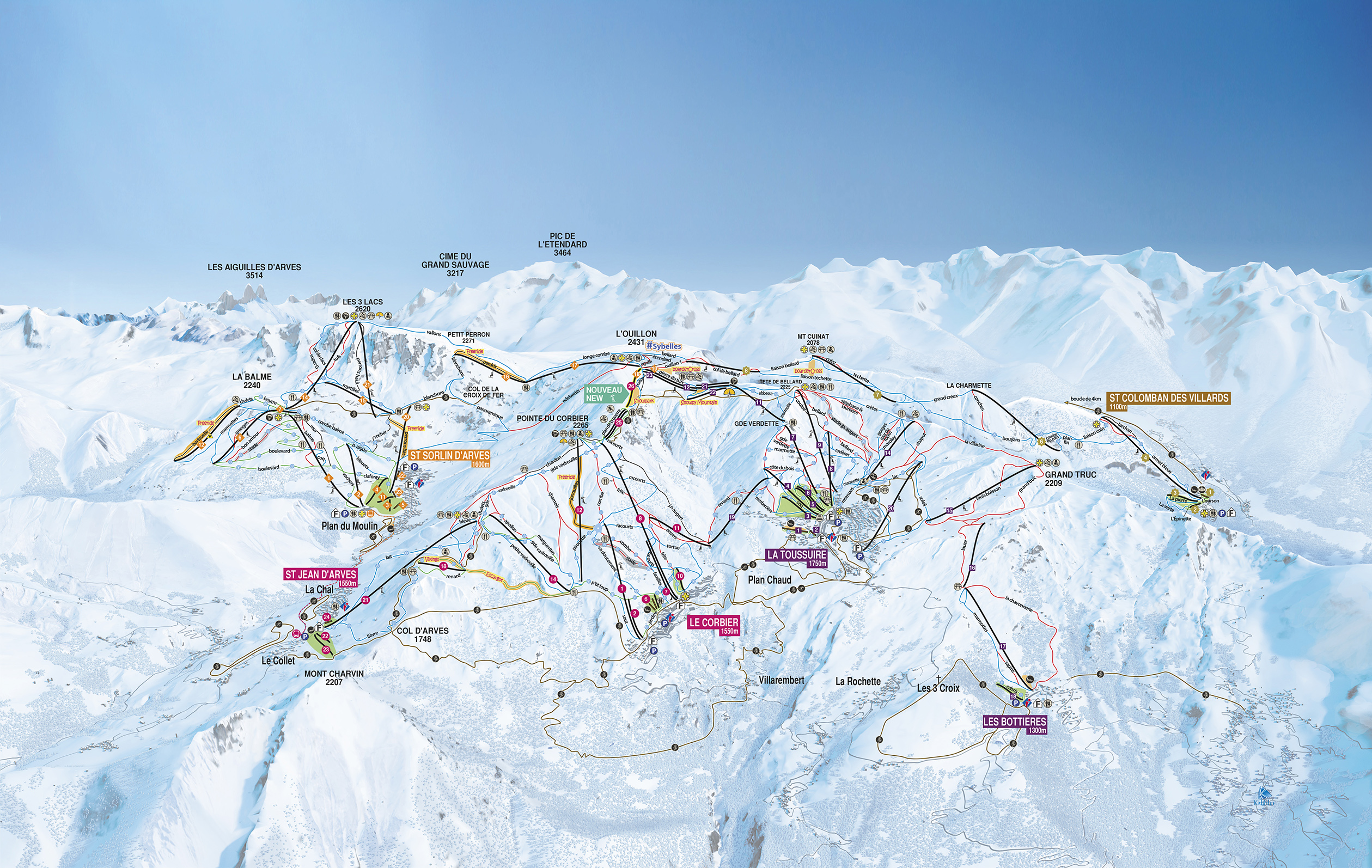 Le domaine skiable des Sybelles® se compose des stations reliées de Saint Sorlin d'Arves, Saint Jean d'Arves, Le Corbier, La Toussuire et Les Bottières, nichées entre 1100 à 2620m d'altitude.